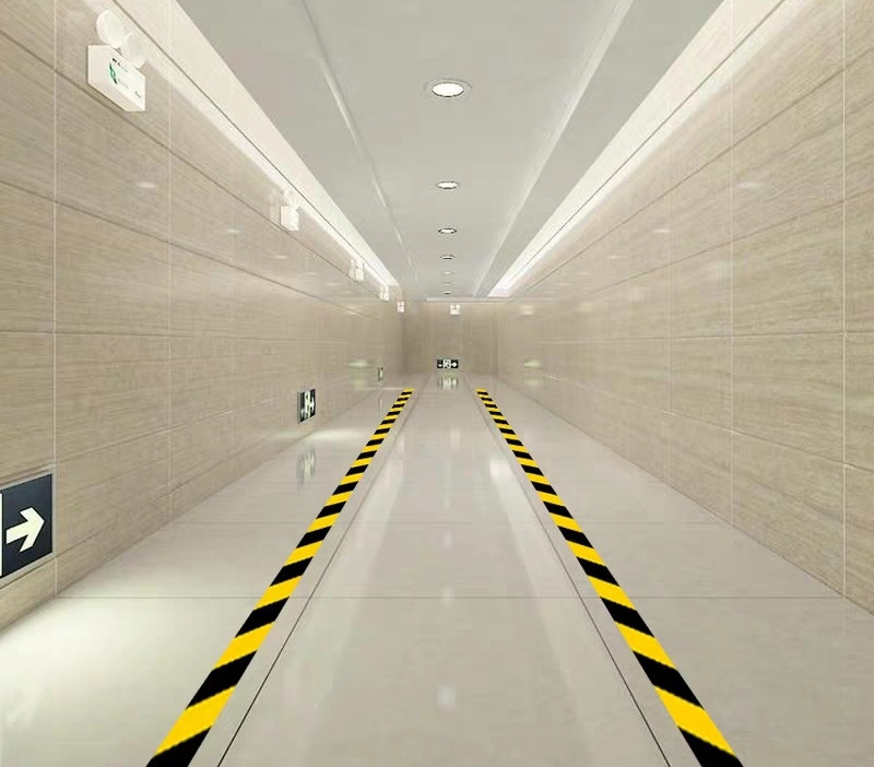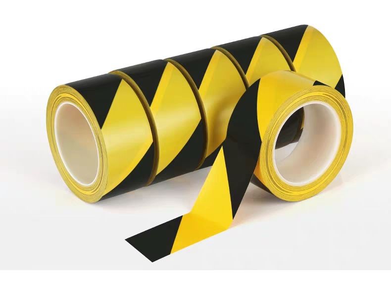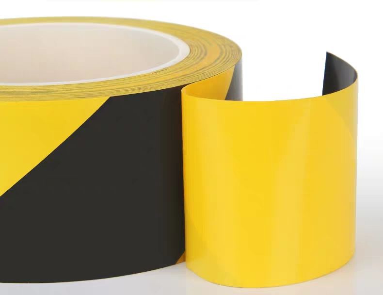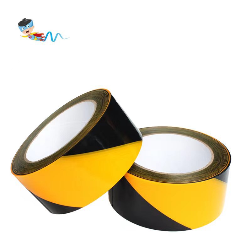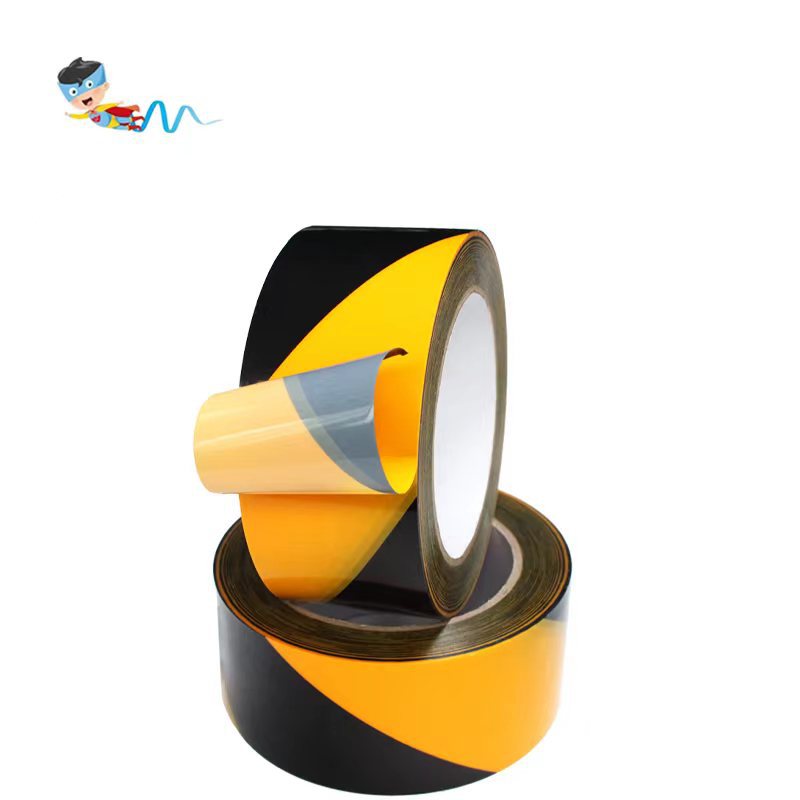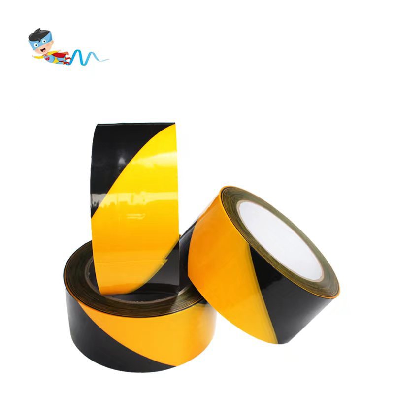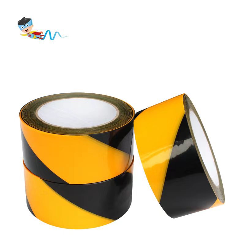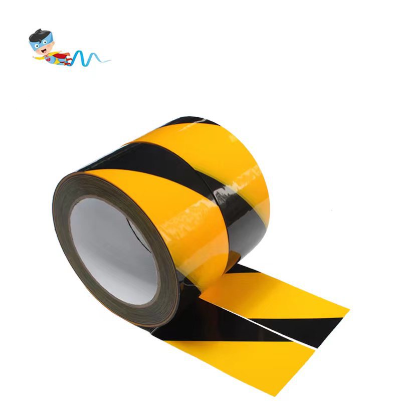 PVC 경고 테이프 검정색과 노란색 얼룩말 라인 안전 경고 테이프 작업장 지상 계단 마킹 테이프 도매