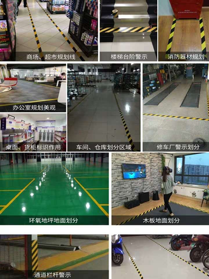 PVC 경고 테이프 검정색과 노란색 얼룩말 라인 안전 경고 테이프 작업장 지상 계단 마킹 테이프 도매스토어 가기