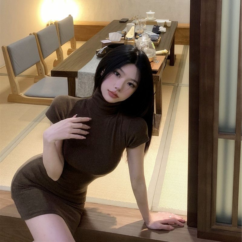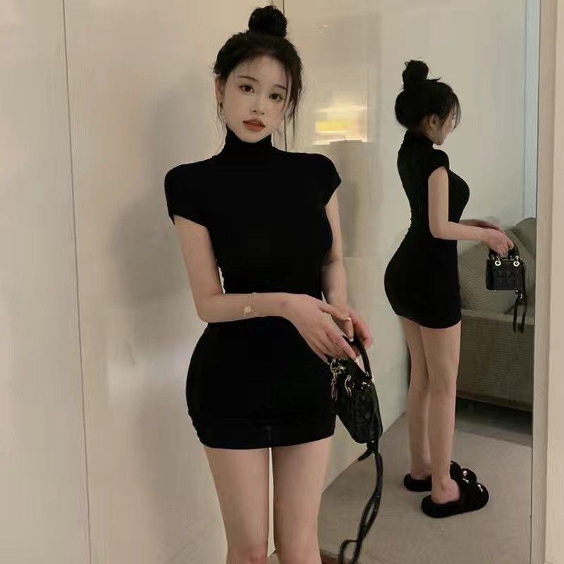 순수한 욕망 스타일 스파이스 소녀 섹시한 가방 암 스커트 여름 작은 높은 칼라 꽉 허리 슬리밍 우아한 원피스 여성스토어 가기