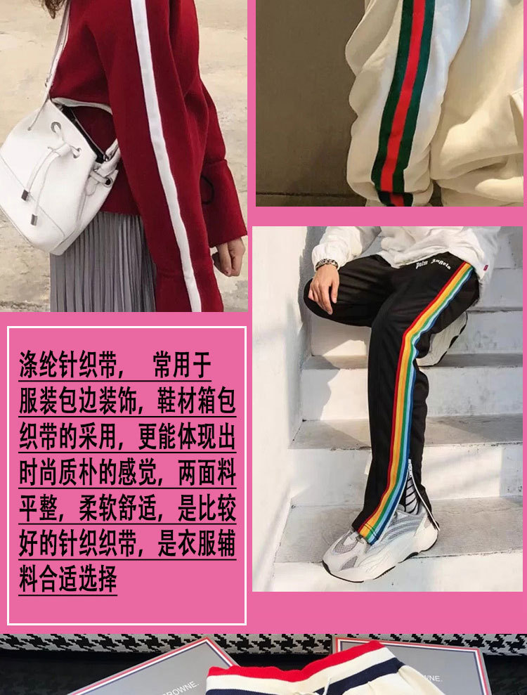 재고 흑백 폴리 에스테르 니트 벨트 백 칼라 레이어링 리본 옷 사이드 스트랩 스티칭 벨트 의류 액세서리스토어 가기