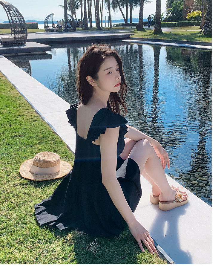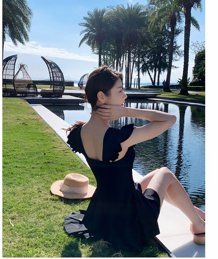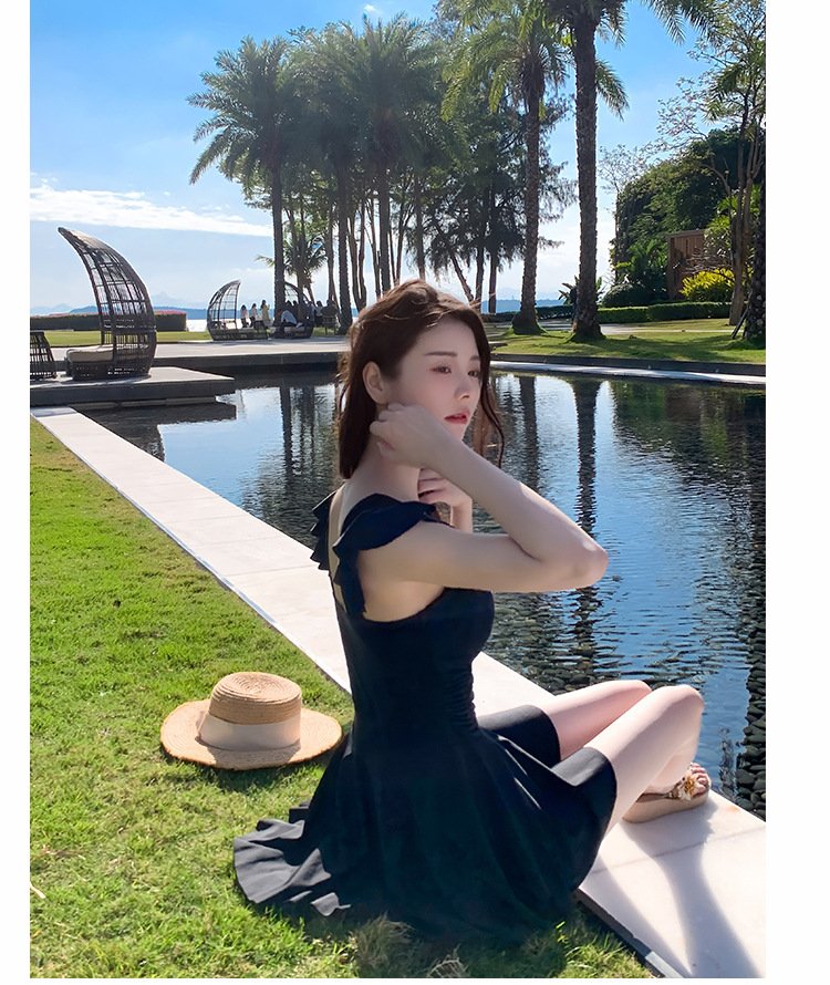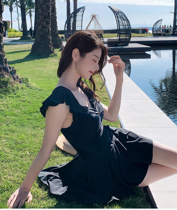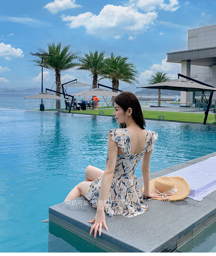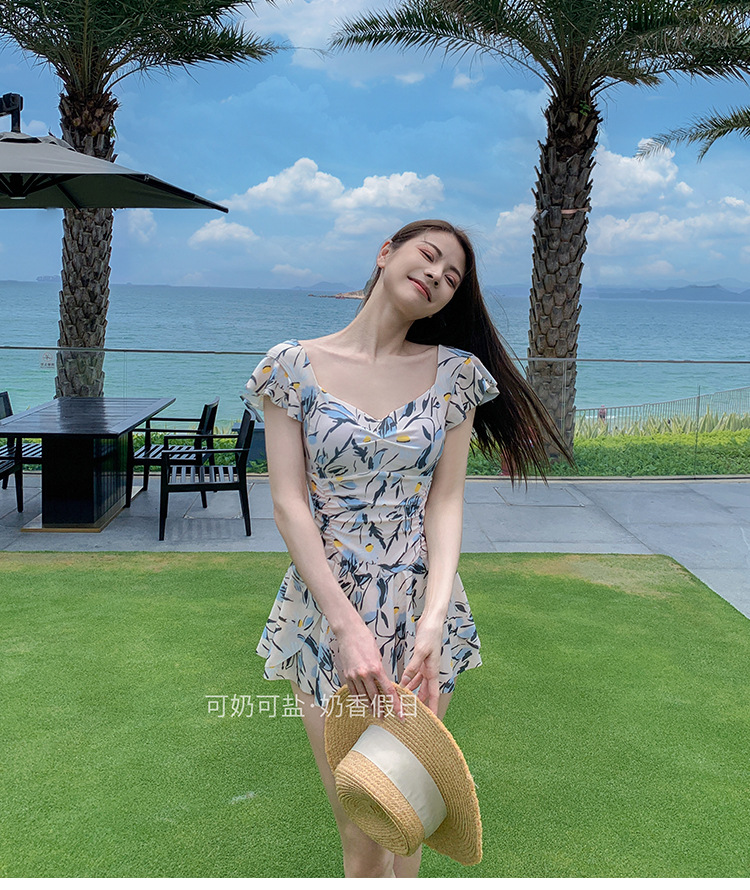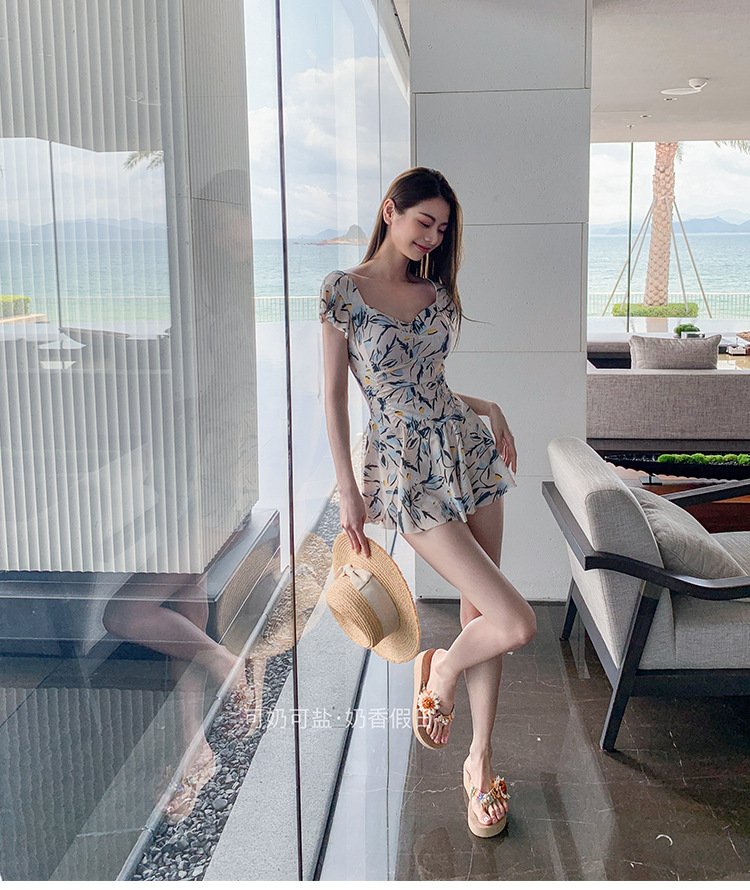 2025 새로운 꽃 무늬 원피스 수영복 여성 복서 프릴 보수적 인 소녀 스트랩 홀터 하이 웨이스트 배꼽 커버 온천스토어 가기