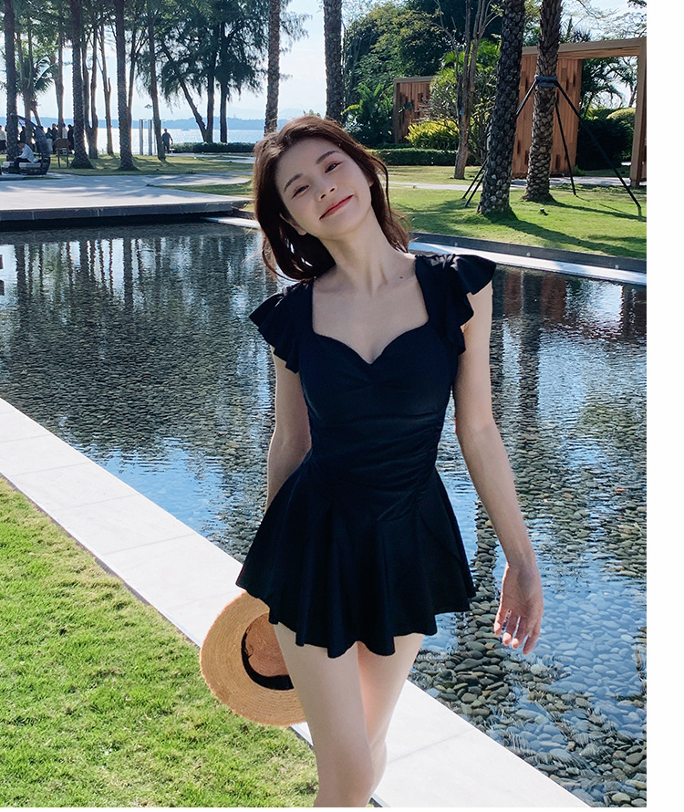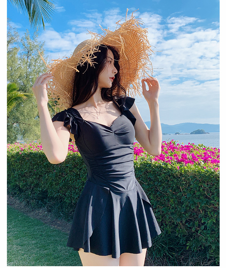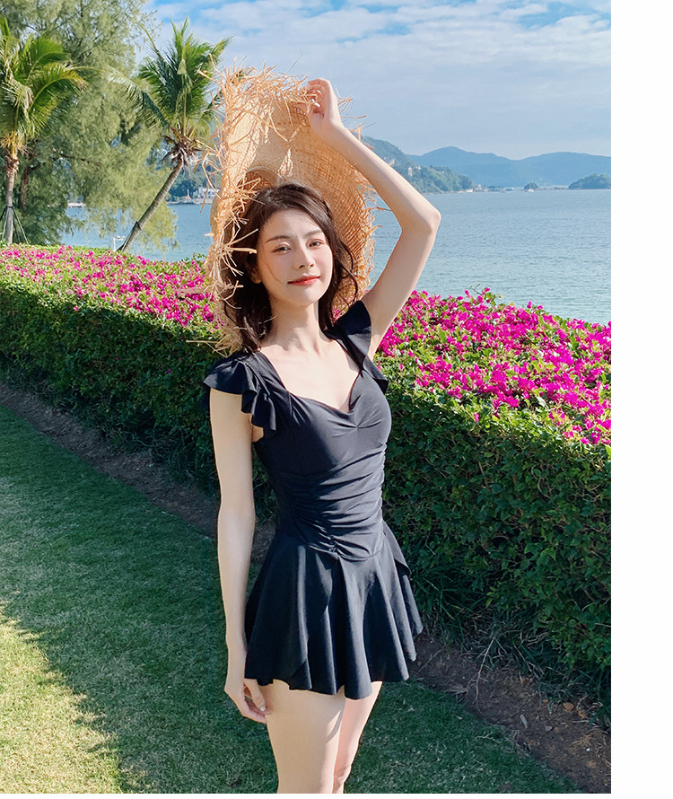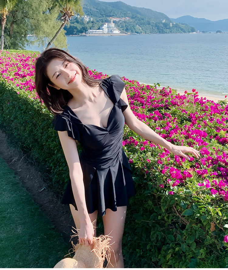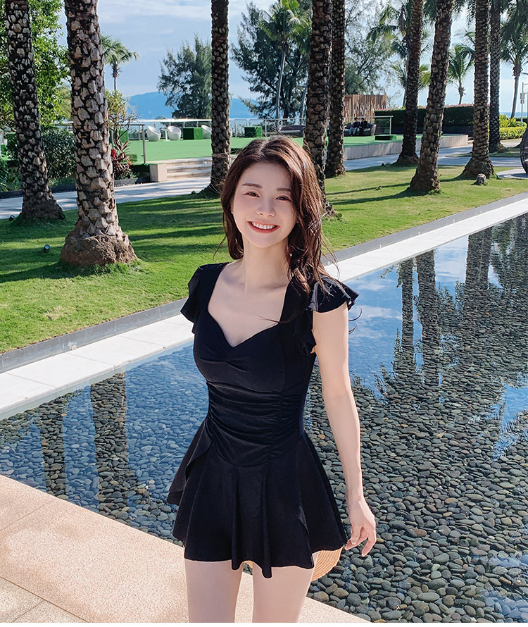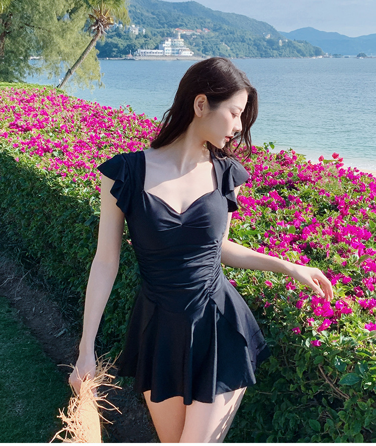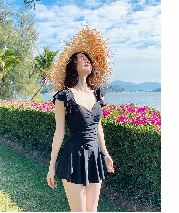 2025 새로운 꽃 무늬 원피스 수영복 여성 복서 프릴 보수적 인 소녀 스트랩 홀터 하이 웨이스트 배꼽 커버 온천