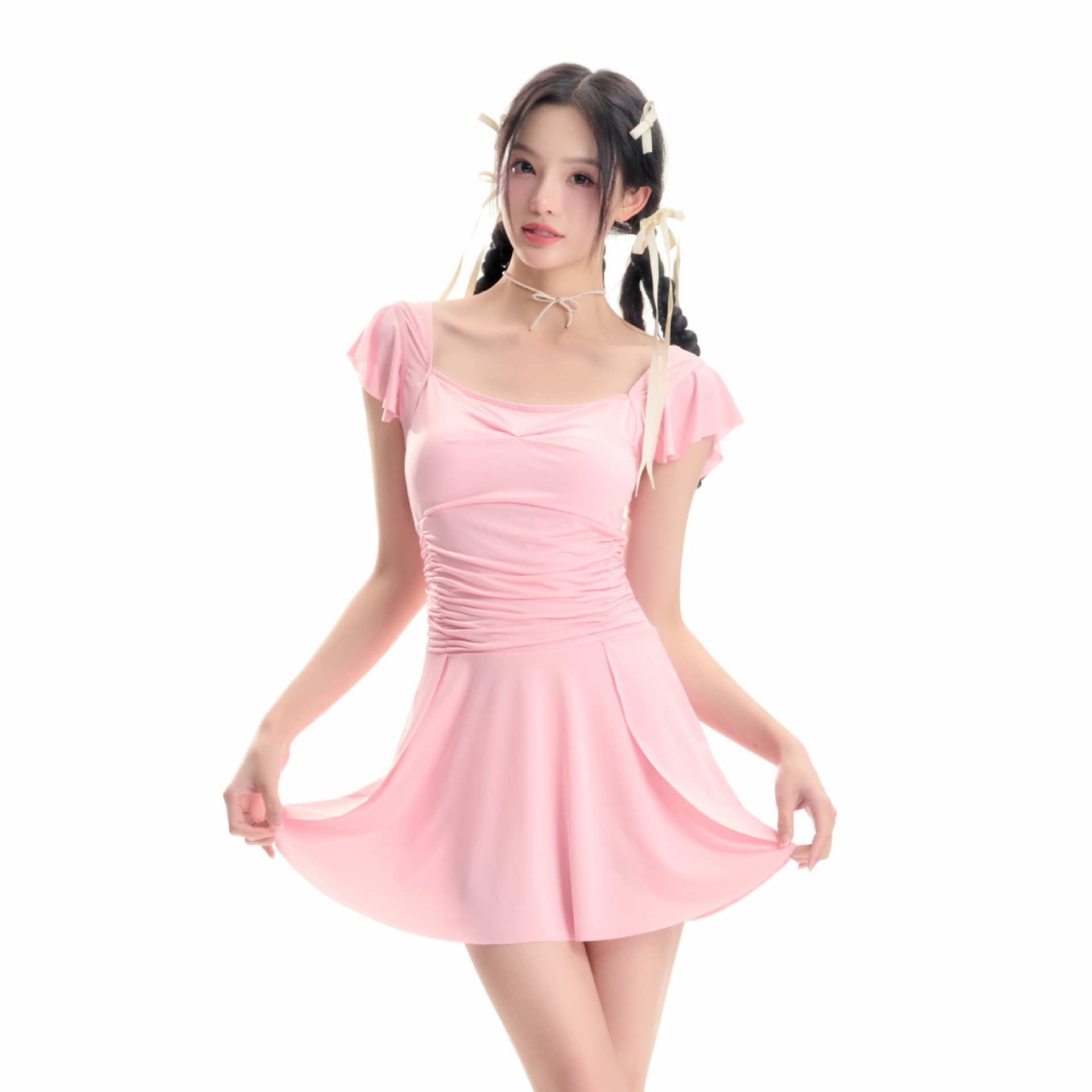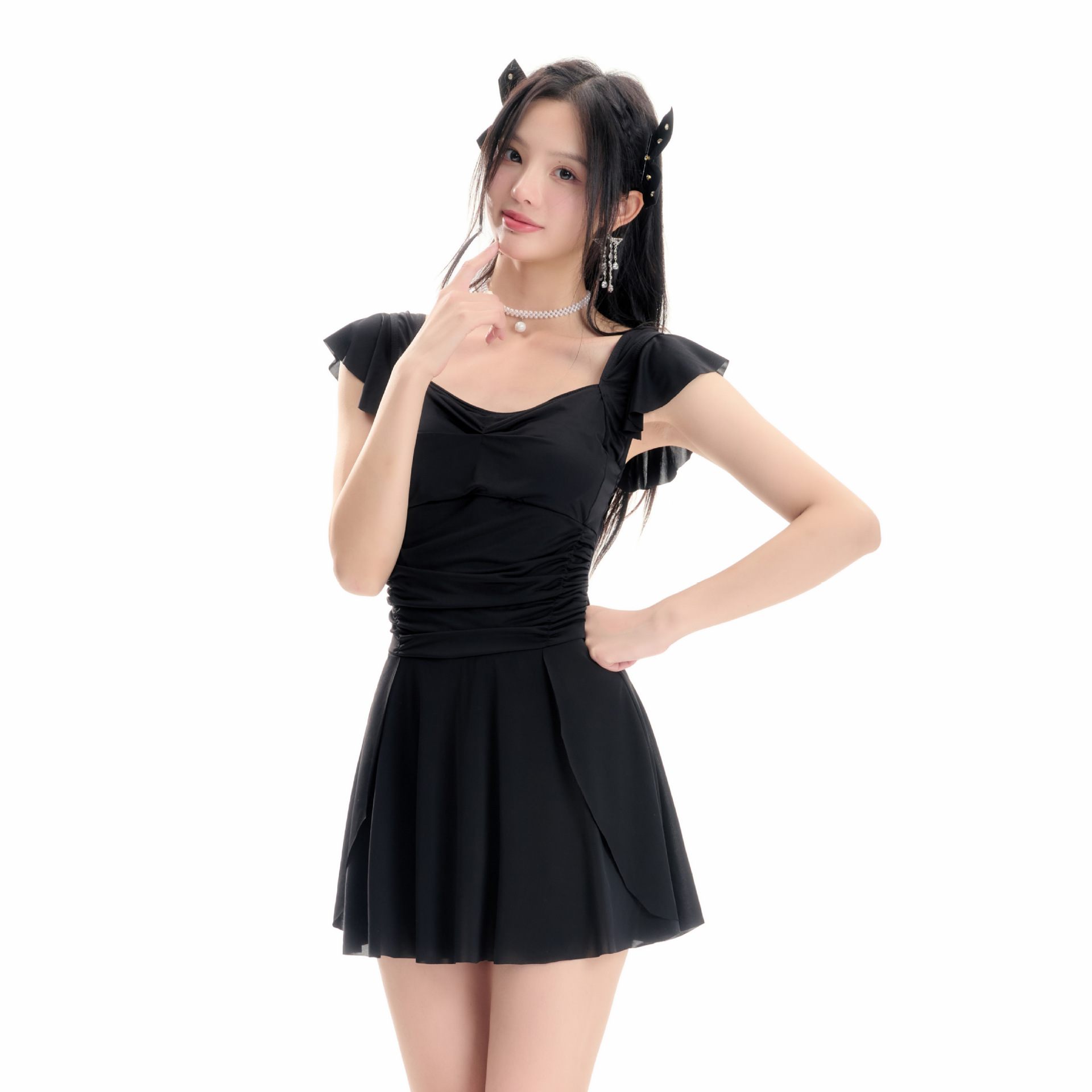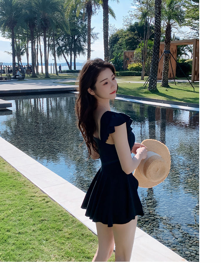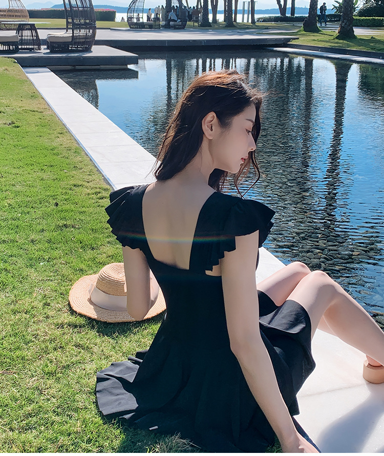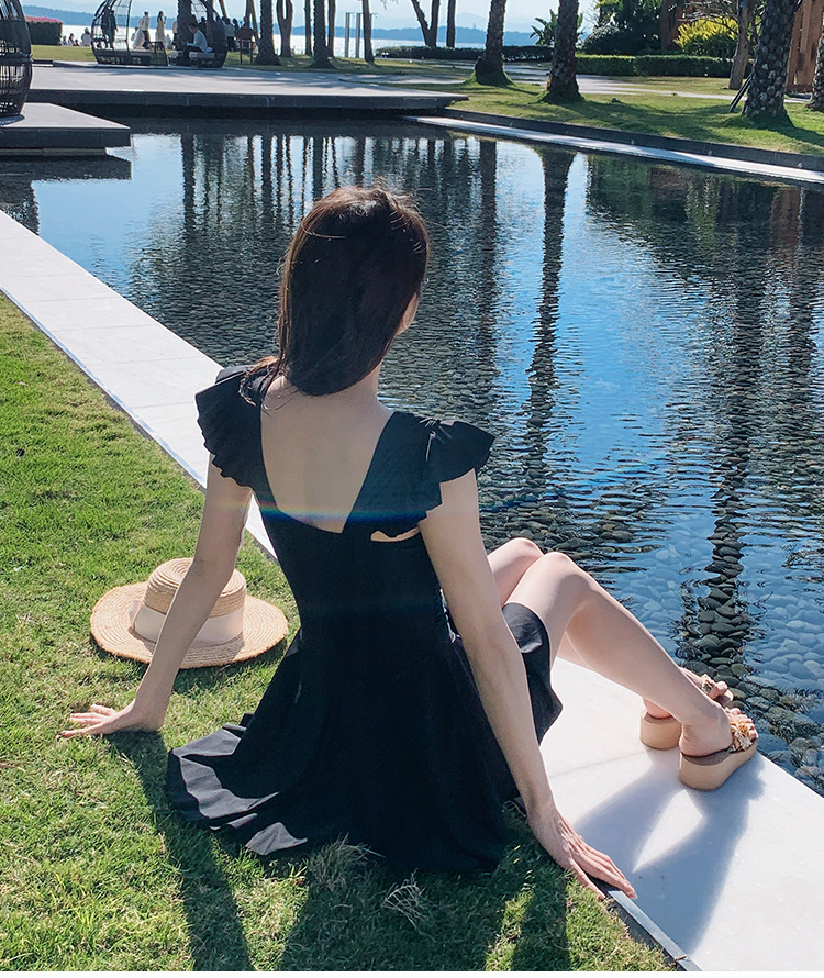 2025 새로운 꽃 무늬 원피스 수영복 여성 복서 프릴 보수적 인 소녀 스트랩 홀터 하이 웨이스트 배꼽 커버 온천