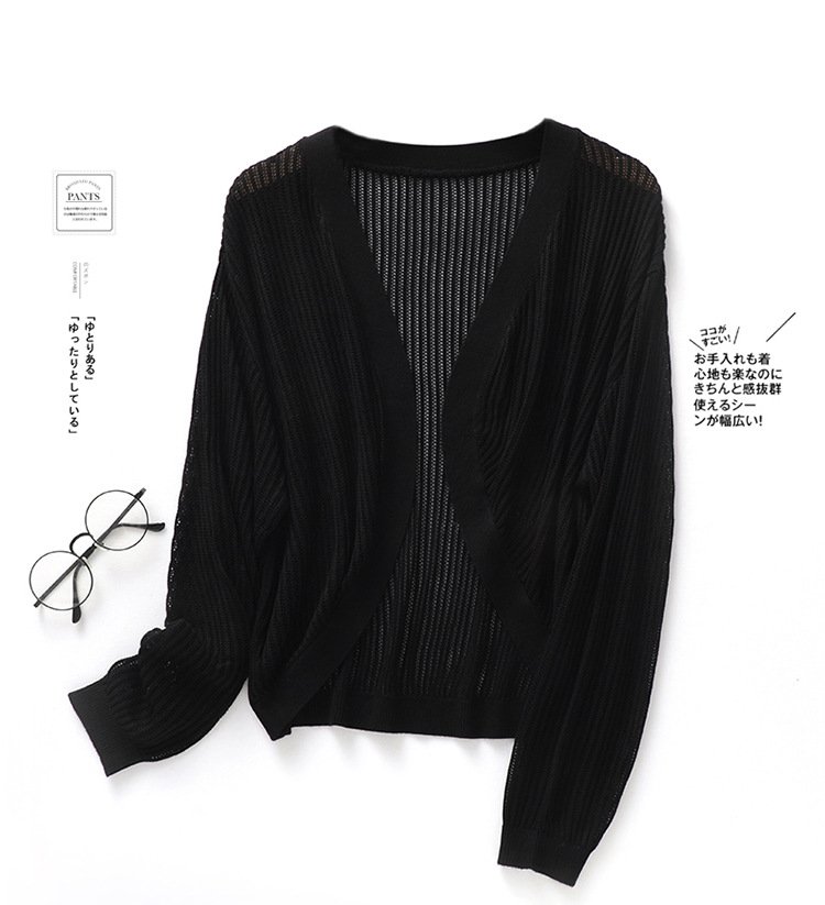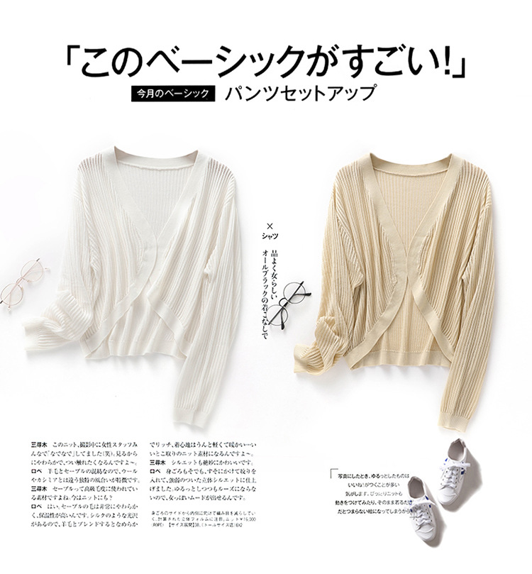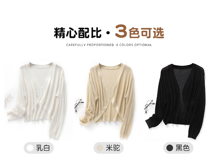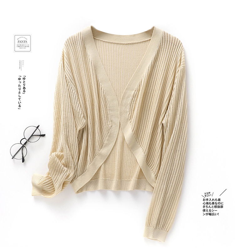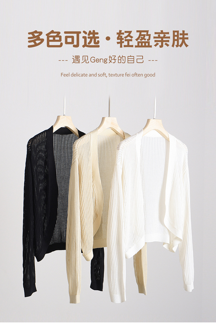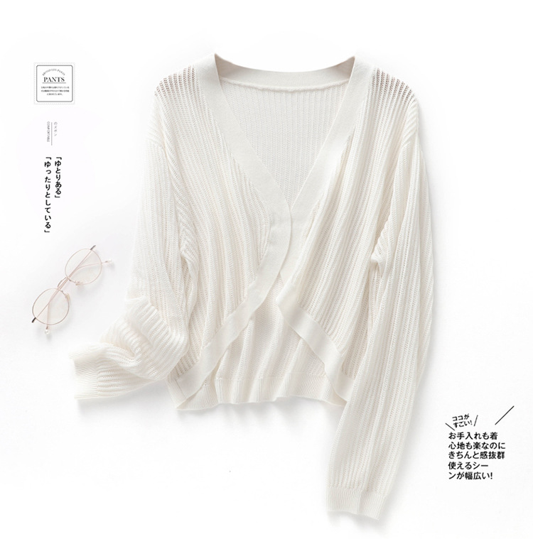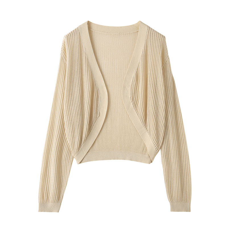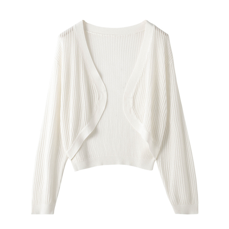 여름 스웨터 카디건 여성용 얇은 양복 조끼 선 스크린 블라우스 짧은 상단 중공 목도리