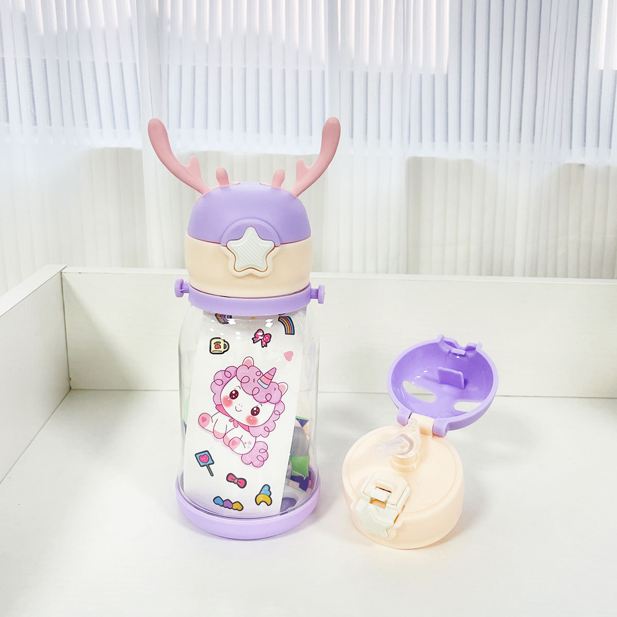 어린이 물컵 여름 휴대용 흡입 컵 여름 귀여운 플라스틱 컵 초등학교 어린이 물병 남자 스트랩 물 컵 여자