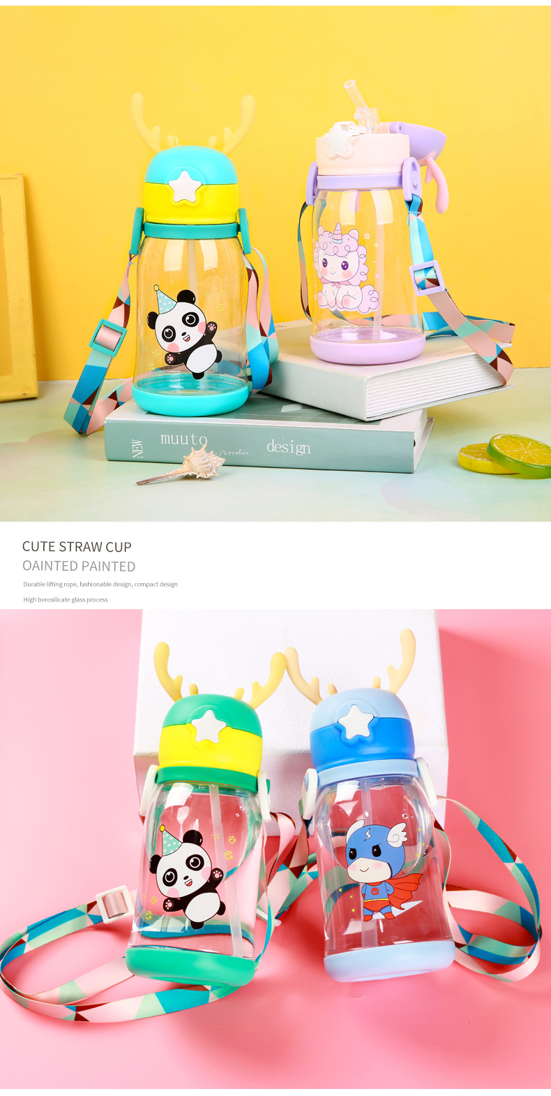 어린이 물컵 여름 휴대용 흡입 컵 여름 귀여운 플라스틱 컵 초등학교 어린이 물병 남자 스트랩 물 컵 여자스토어 가기