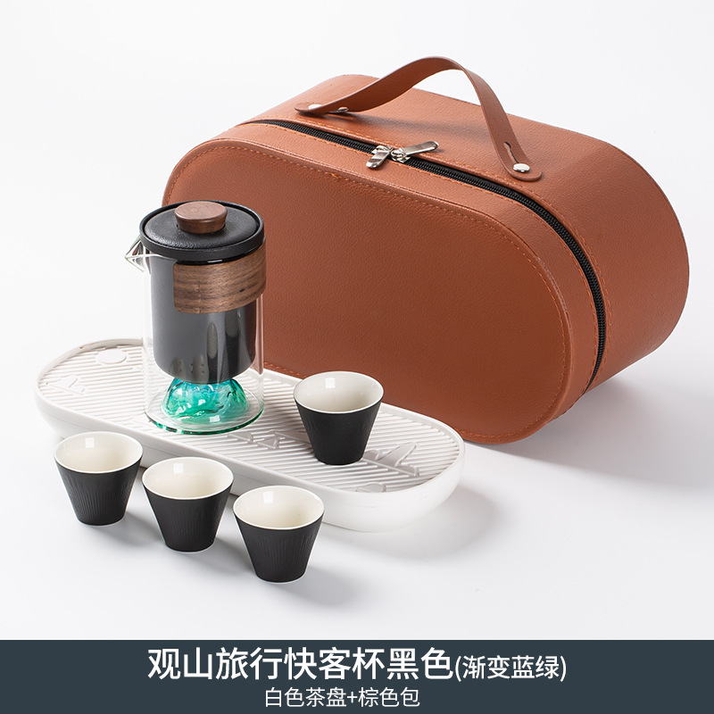 • 참조 Qingshan 투명 포트 4 컵 블랙 + 티 트레이 + 티 포트