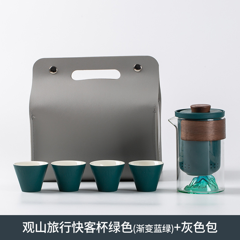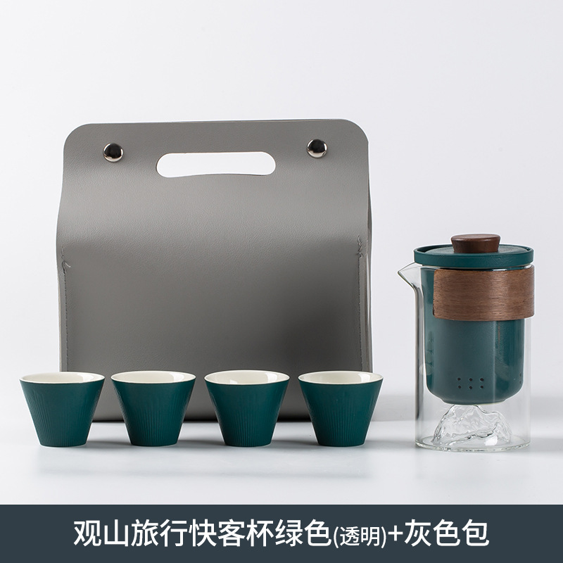 마운틴 뷰 컵 여행 차 세트 세트 익스프레스 컵 휴대용 차 세트 야외 차 컵 한 냄비 네 컵 세트 로고