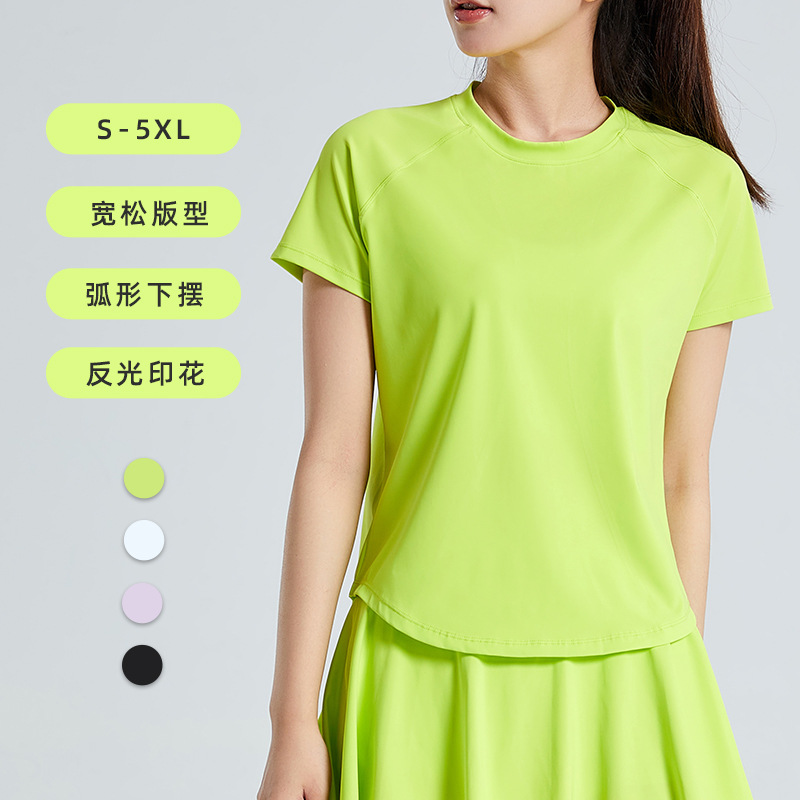스포츠 탑 여성용 플러스 사이즈 느슨한 슬리밍 속건 티셔츠 블라우스 반팔 러닝 피트니스 여름 새로운 요가 의류스토어 가기