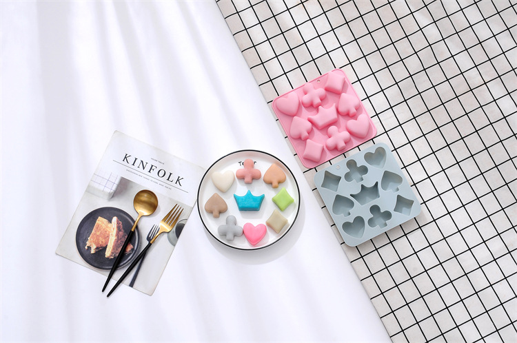 재고 9 심지어 카드 놀이 테마 모델링 드롭 몰드 수동 차가운 비누 베이킹 초콜릿 실리콘 케이크 금형