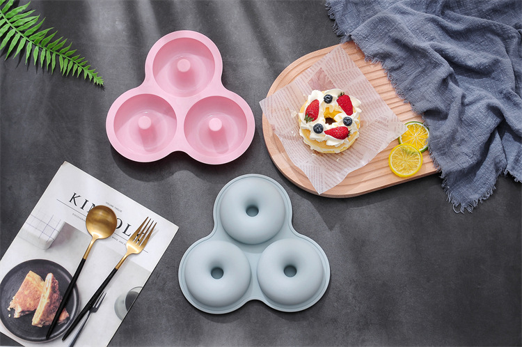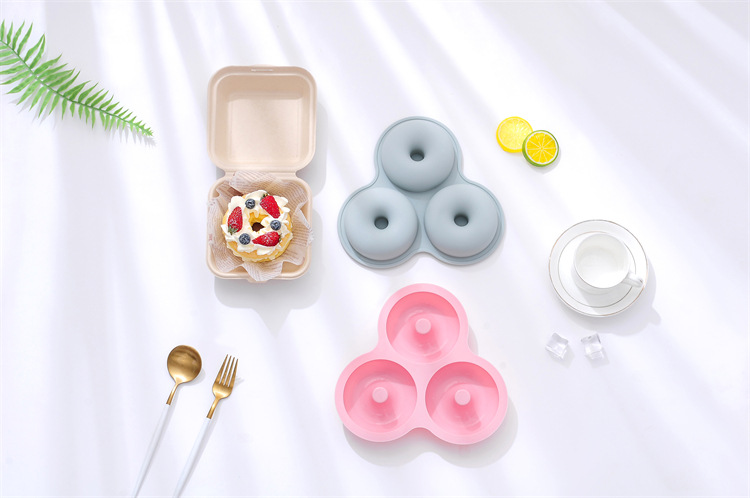 재고 3 도넛 모양 실리콘 몰드 베이킹 에어 프라이어 베이킹 트레이 DIY 스낵 케이크 몰드