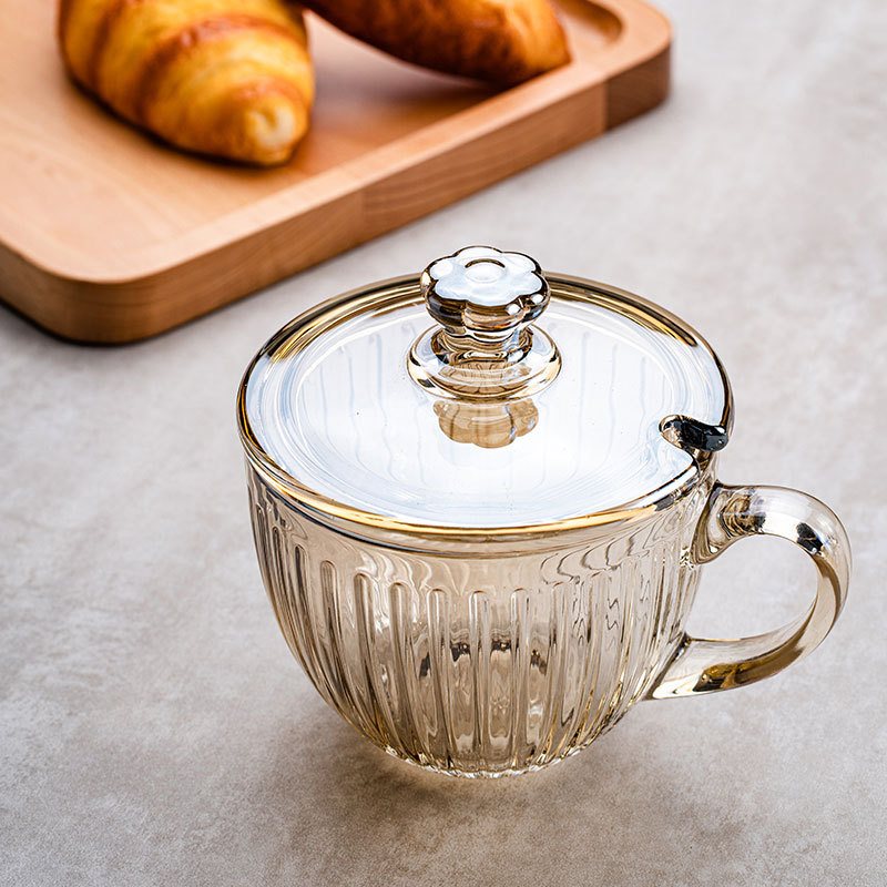 가벼운 럭셔리 고온 저항 투명 유리 마시는 컵 가정용 물 컵 가방 커버 거실 찻잔 숟가락 유제품 컵스토어 가기