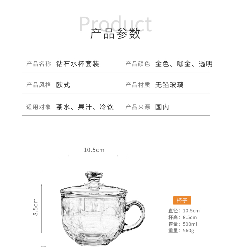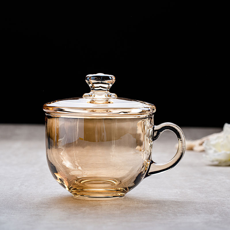 가벼운 럭셔리 고온 저항 투명 유리 마시는 컵 가정용 물 컵 가방 커버 거실 찻잔 숟가락 유제품 컵