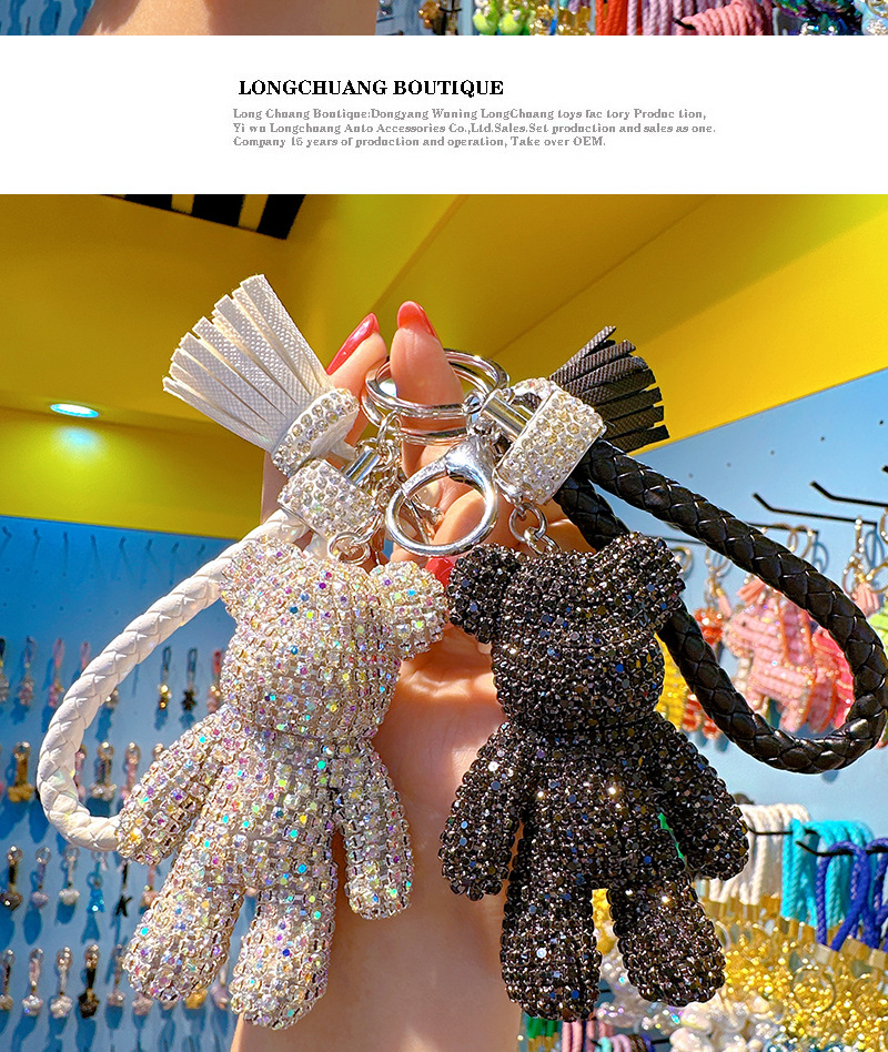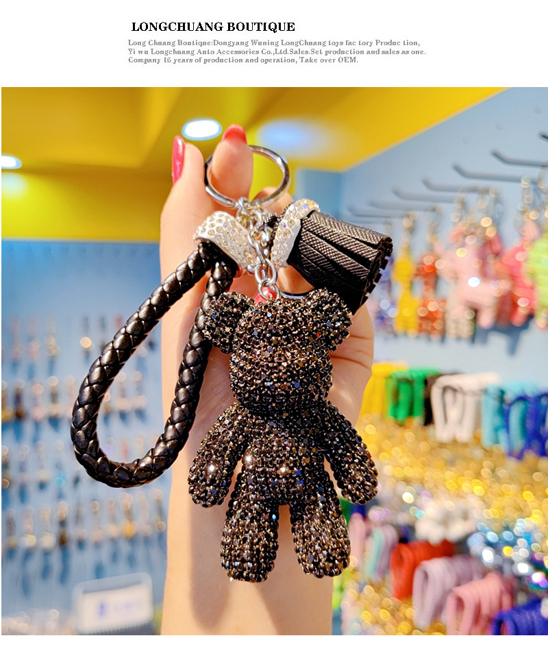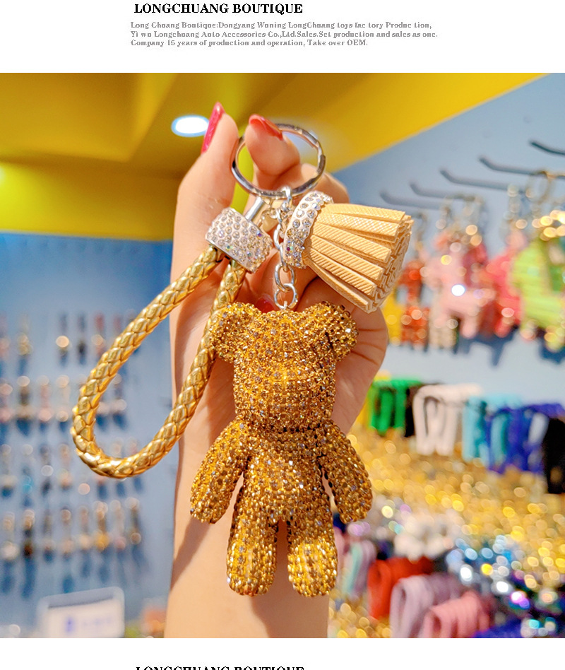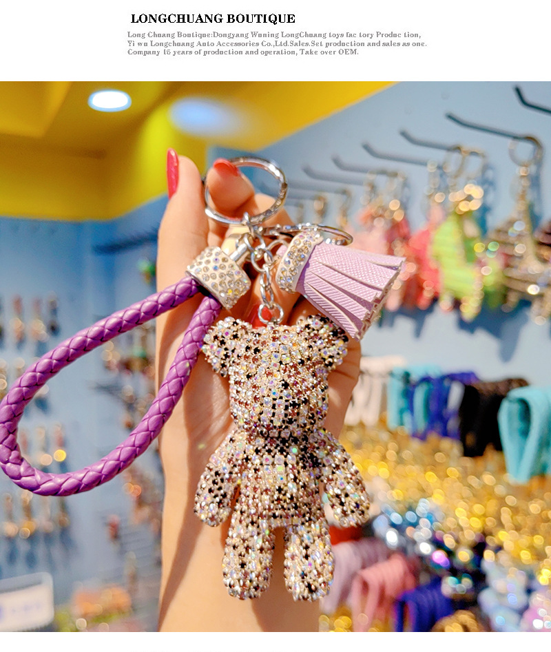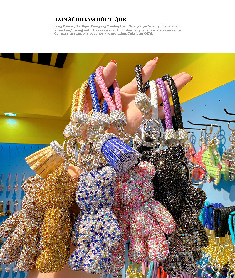 전체 다이아몬드 폭력적인 곰 자동차 열쇠 고리 다이아몬드 곰 가방 펜던트 열쇠 고리 펜던트 다이아몬드 땋은 밧줄 곰스토어 가기