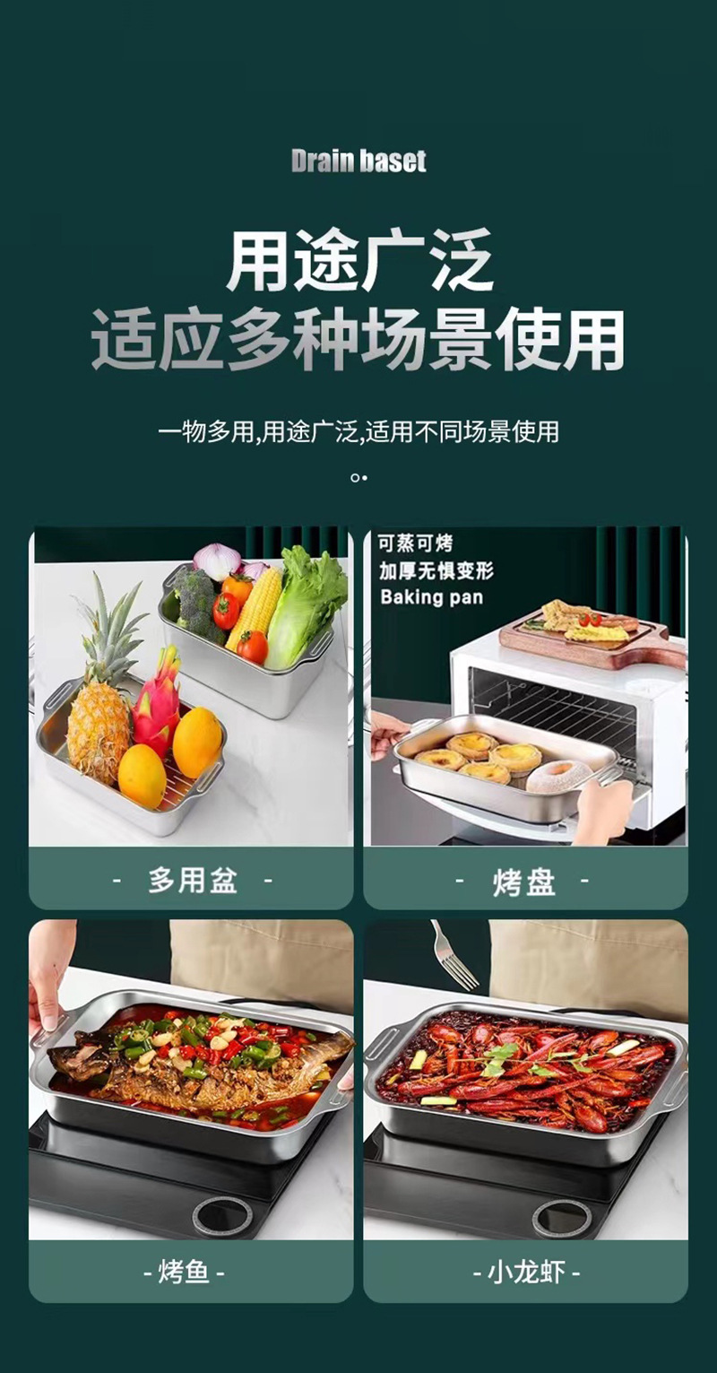 스테인레스 스틸 구운 생선 접시 직사각형 가정용 구운 생선 트레이 상업용 유도 밥솥 트레이 그릴 접시 구운 생선 스토브 접시