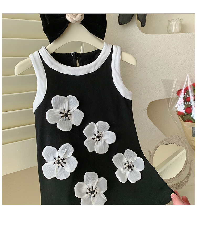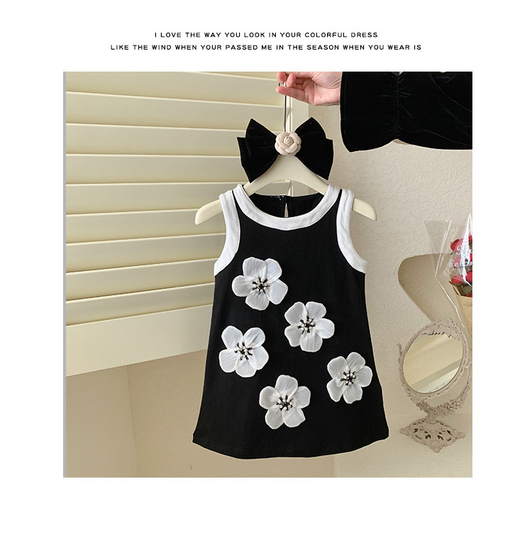 6531 민소매 검은 공주 원피스 여름 햅번 조끼 꽃 어린이 케이크 스커트 아기 원피스