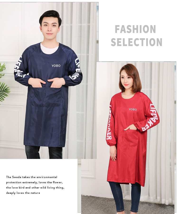Y0EZ 도매 봄과 여름 경량 길어진 마이크로 방수 긴 소매 앞치마 역착용 이발사 남성과 여성의 작업복 빛스토어 가기