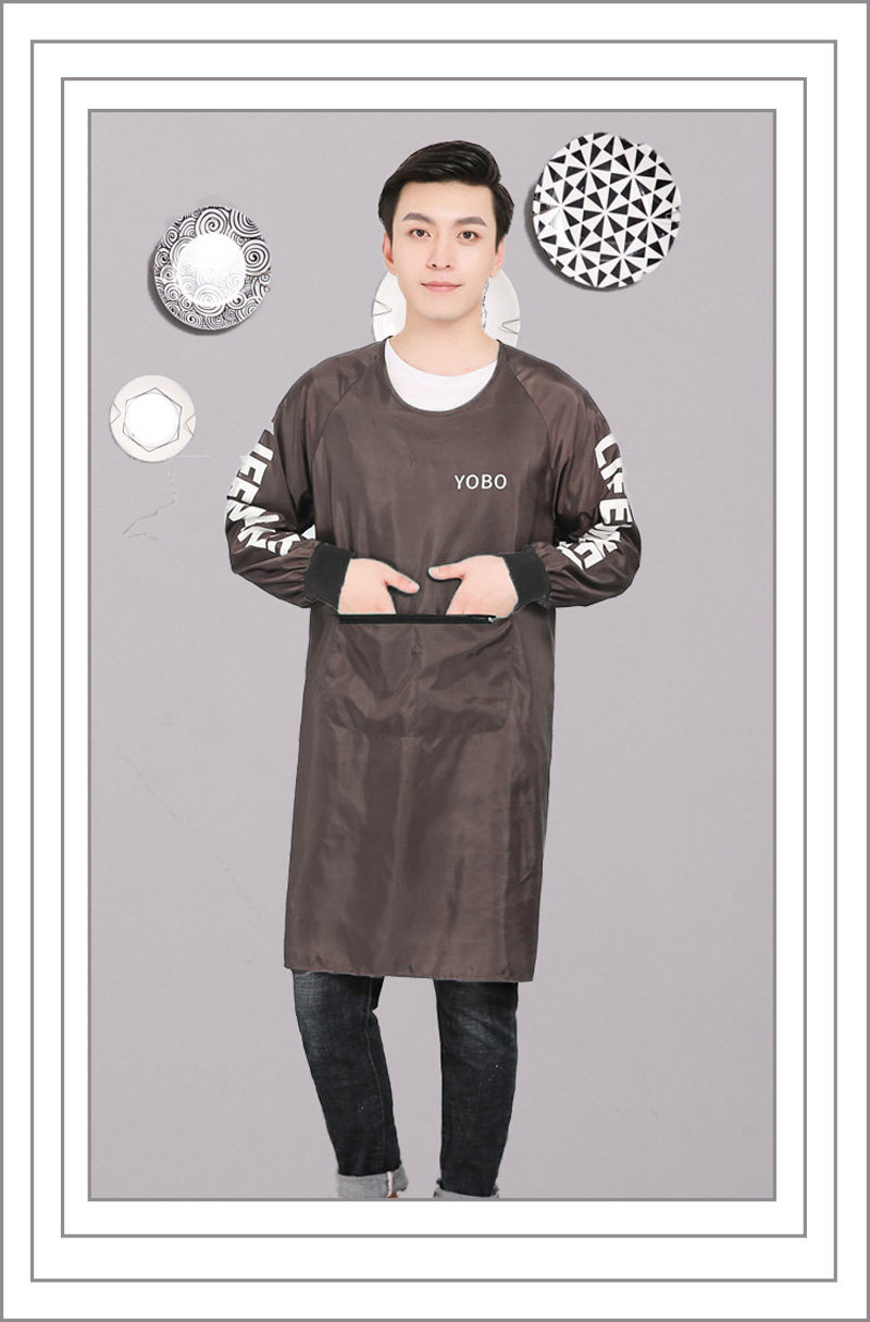 Y0EZ 도매 봄과 여름 경량 길어진 마이크로 방수 긴 소매 앞치마 역착용 이발사 남성과 여성의 작업복 빛