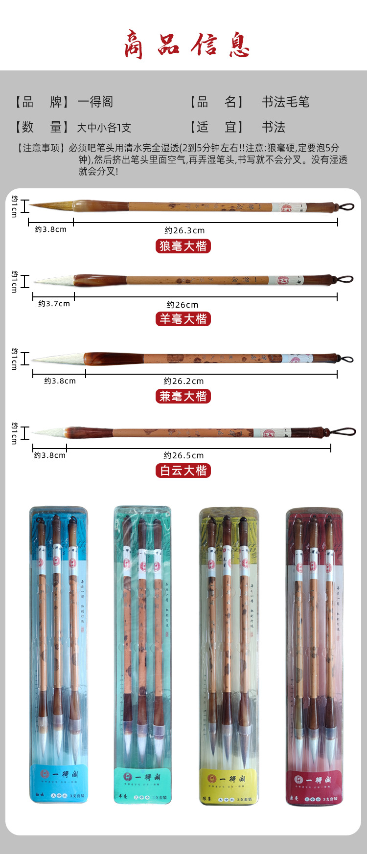 Yidege 브러쉬 늑대의 머리카락과 양의 머리 큰 바이윤 학생 연구 4 보물 전통 중국 회화 붓 서예 특별 세트스토어 가기