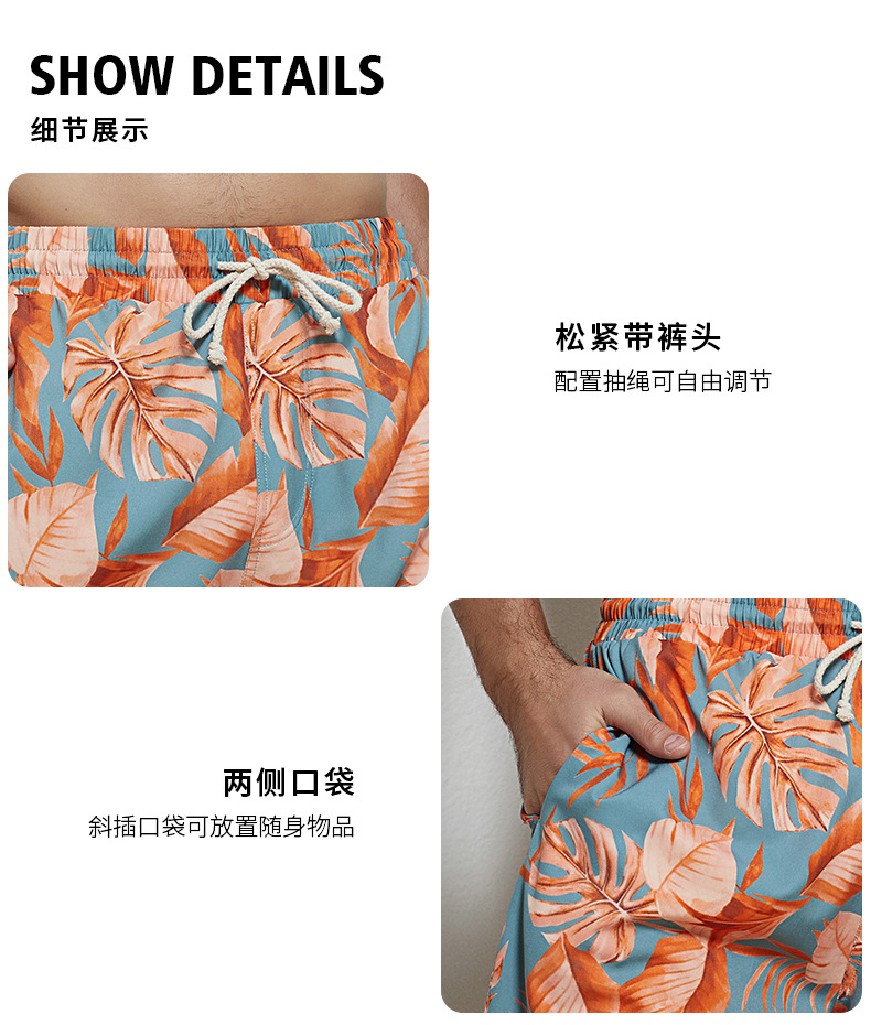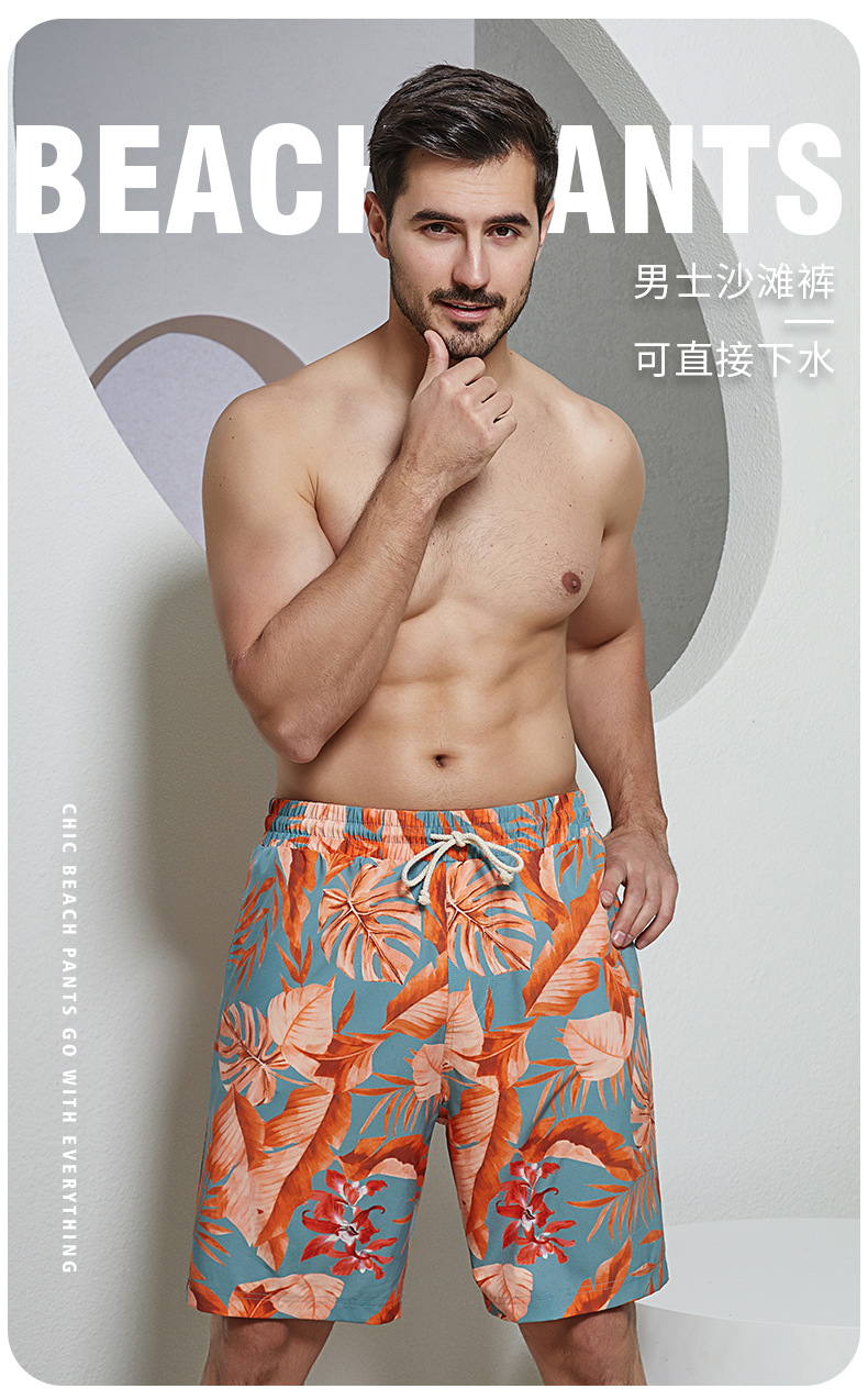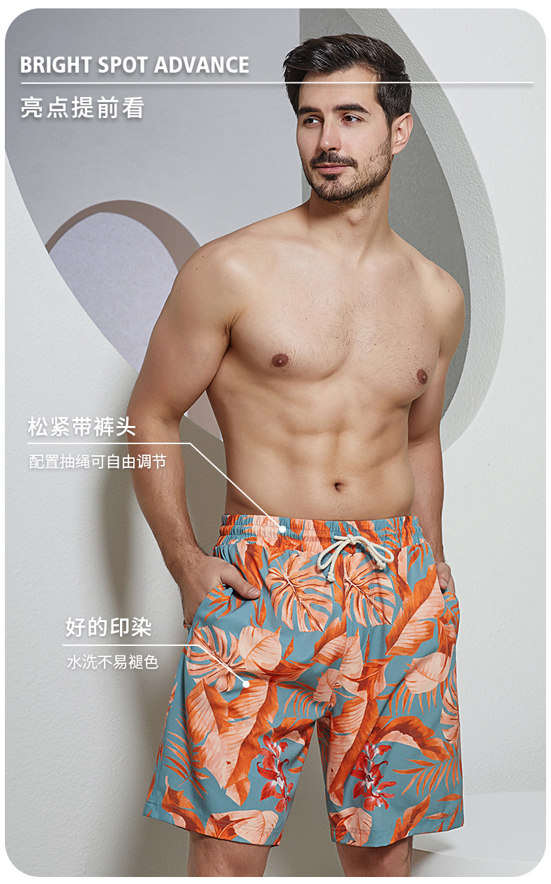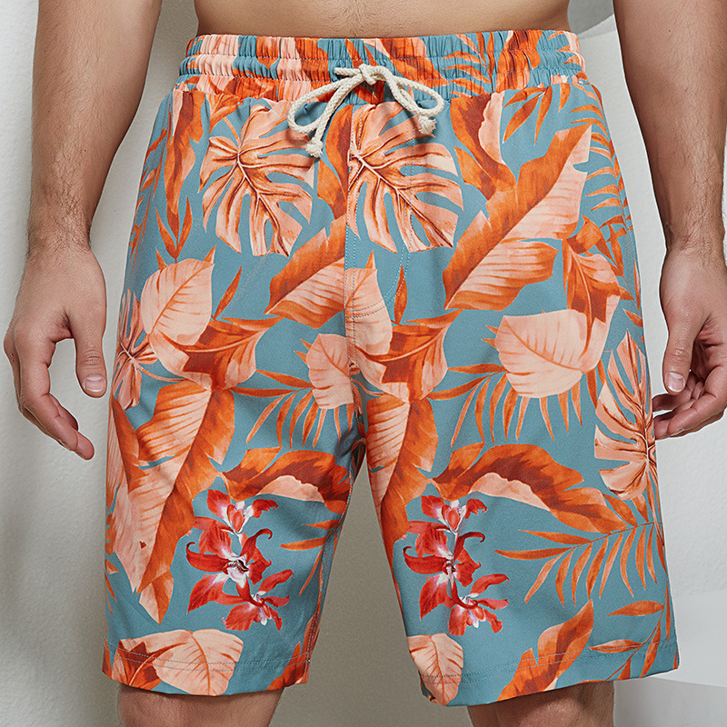 오케일 남성용 비치 팬츠 프린트 롱 버전 5부 루즈핏 캐주얼 휴가 온천 해변 노출방지스토어 가기