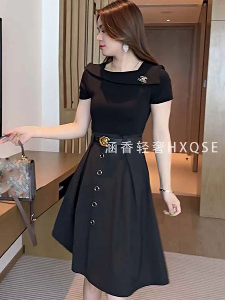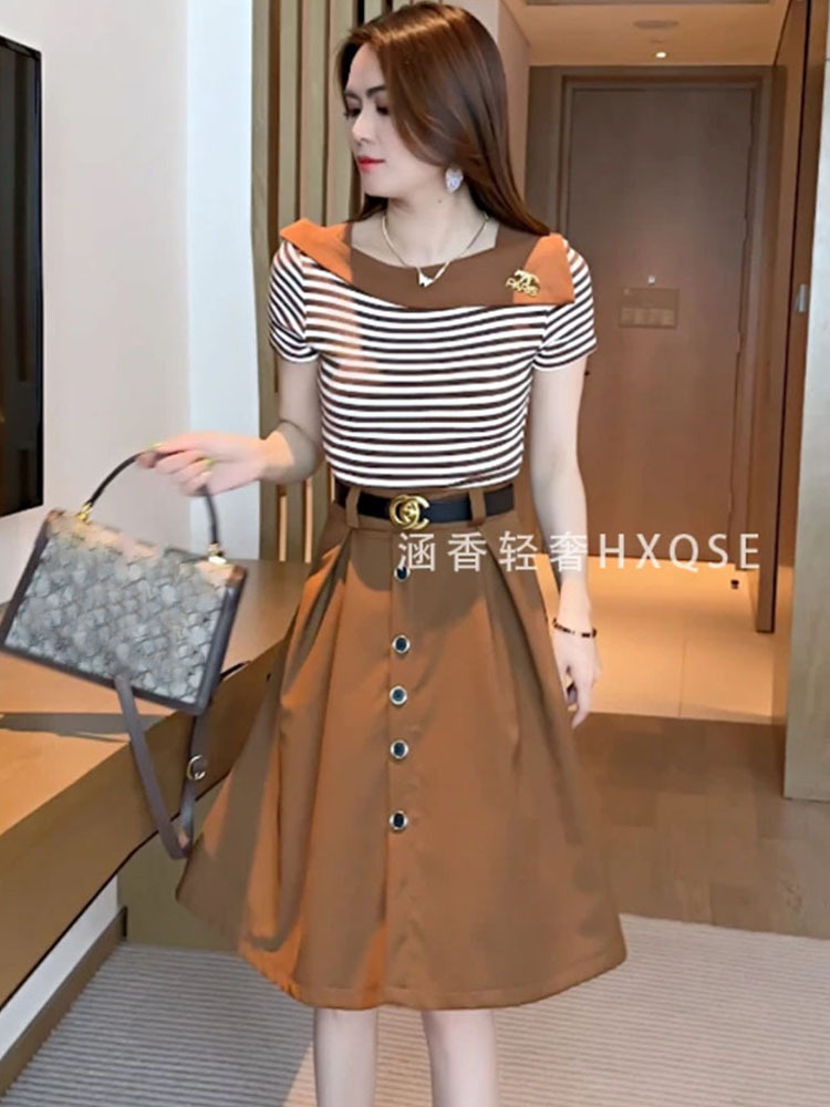 우아한 스트라이프 페이크 투피스 원피스 여성 여름 2025 신상 예쁜 라이트 럭셔리 허리 슬림 A라인 스커트스토어 가기