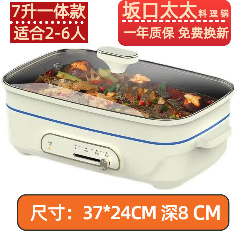 새 아내 사카구치 인터넷 연예인 다기능 요리 냄비 7L 전기 냄비 구이 생선 냄비 가정용 대용량 전기 요리 냄비