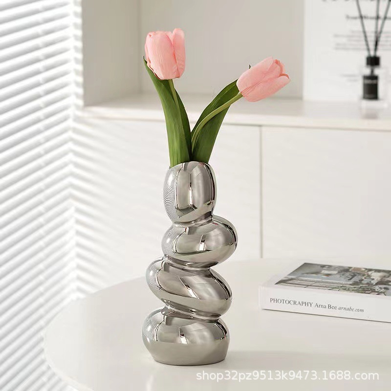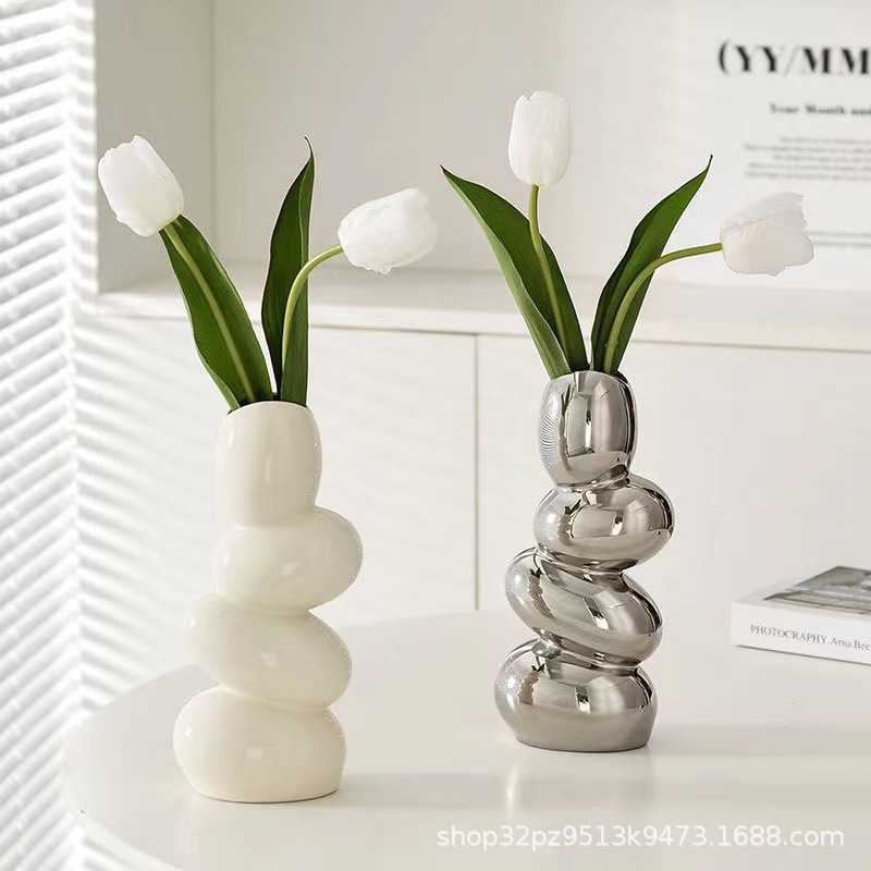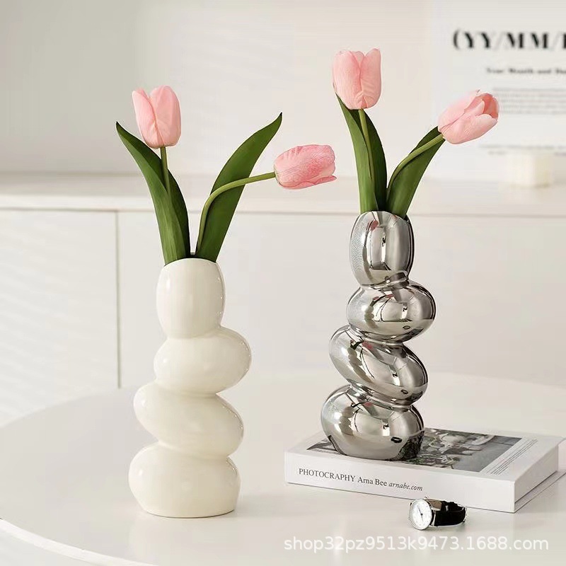 고급 조명 럭셔리 페블 꽃병 장식 거실 꽃 정렬 데스크톱 TV 내각 인터넷 유명인 고급 틈새 장식스토어 가기