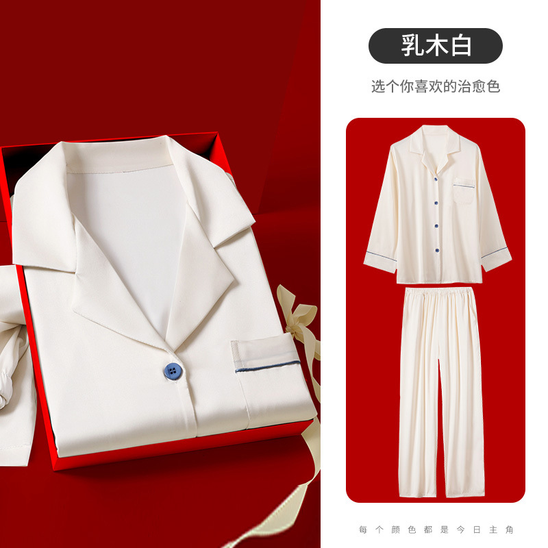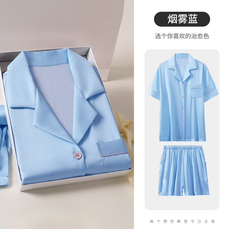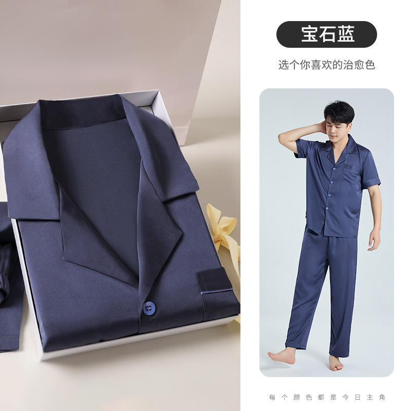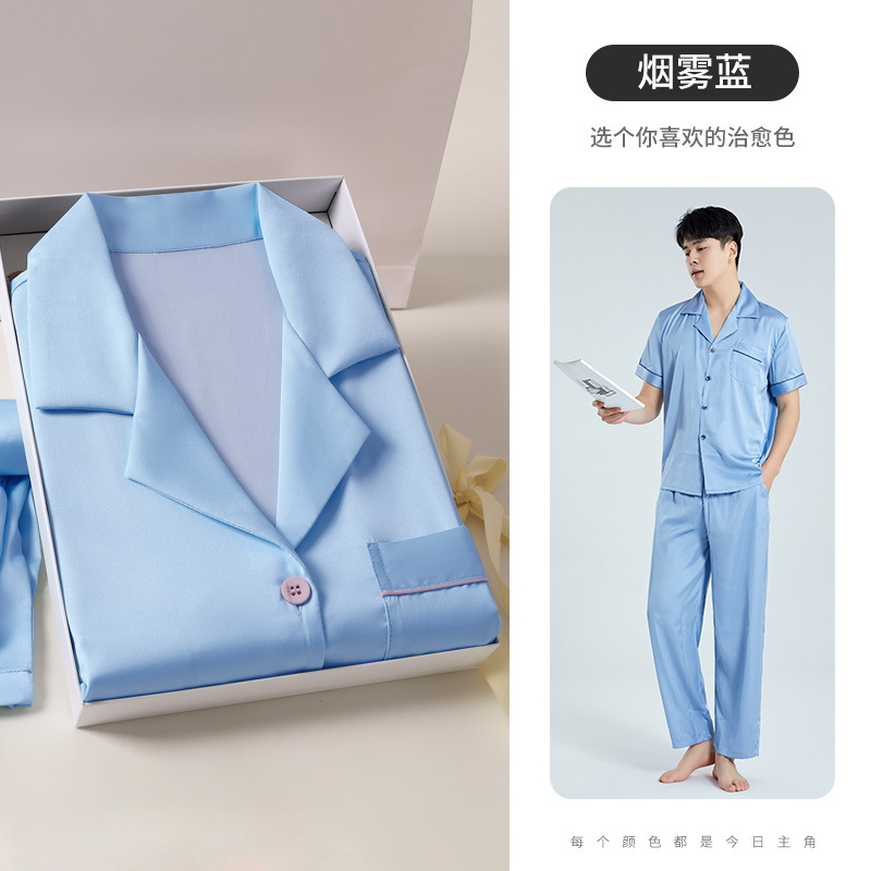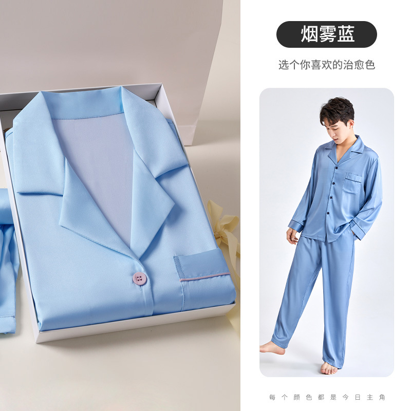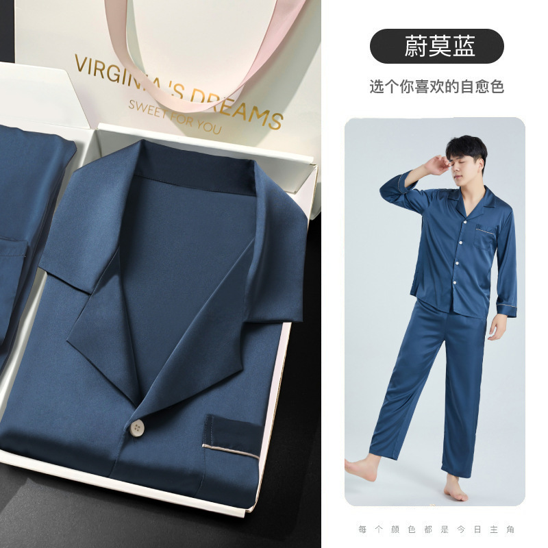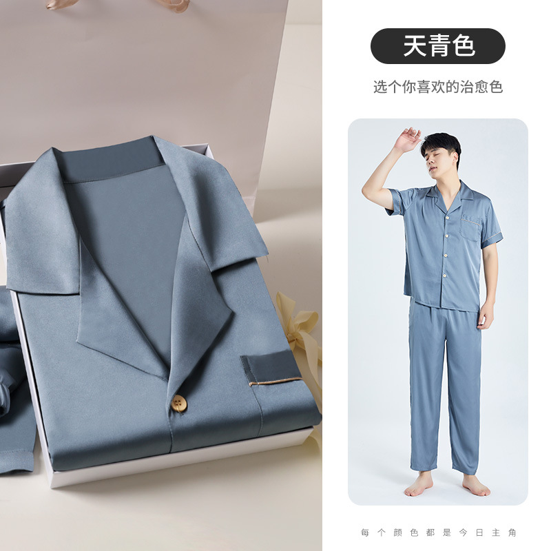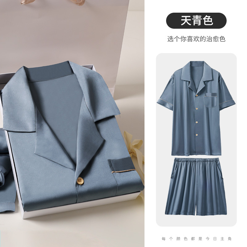 하늘색 아버지 생일 선물 잠옷 아이스 실크 잠옷 남성 세트 홈웨어 남성 고급스러운 선물 남자친구에게스토어 가기