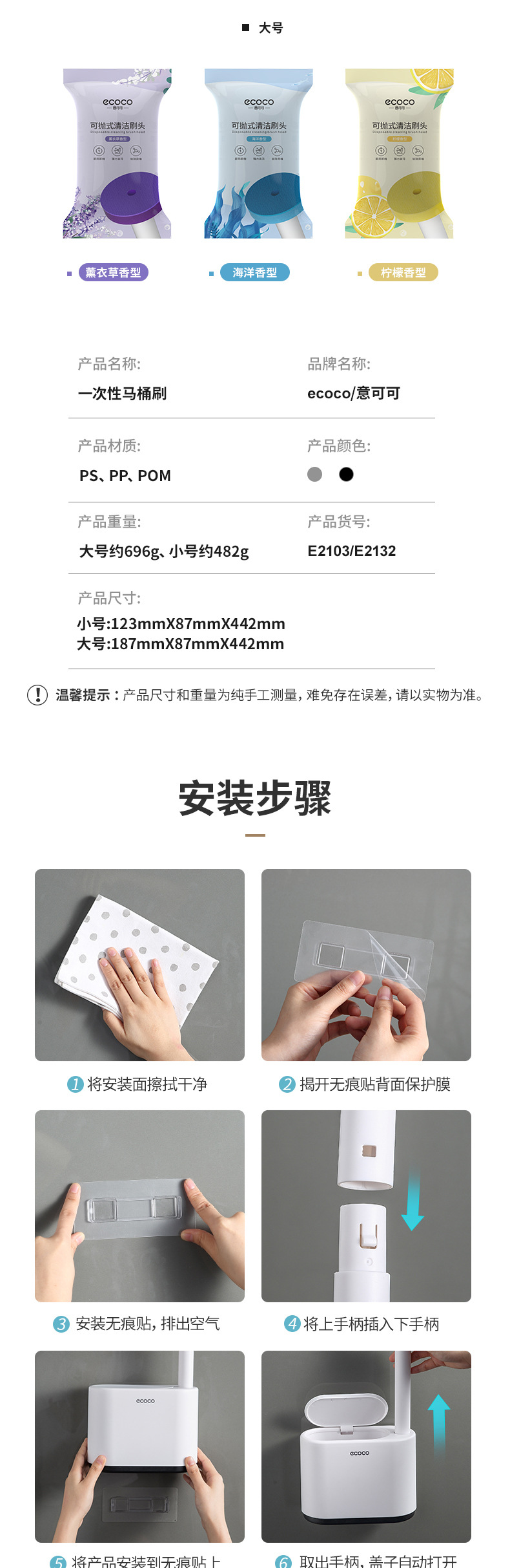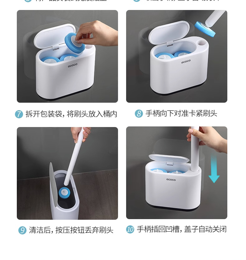 • 클래식 블랙 스탠다드 “벽 변기 브러시 + 바다 풍미 브러시 헤드 8 장]