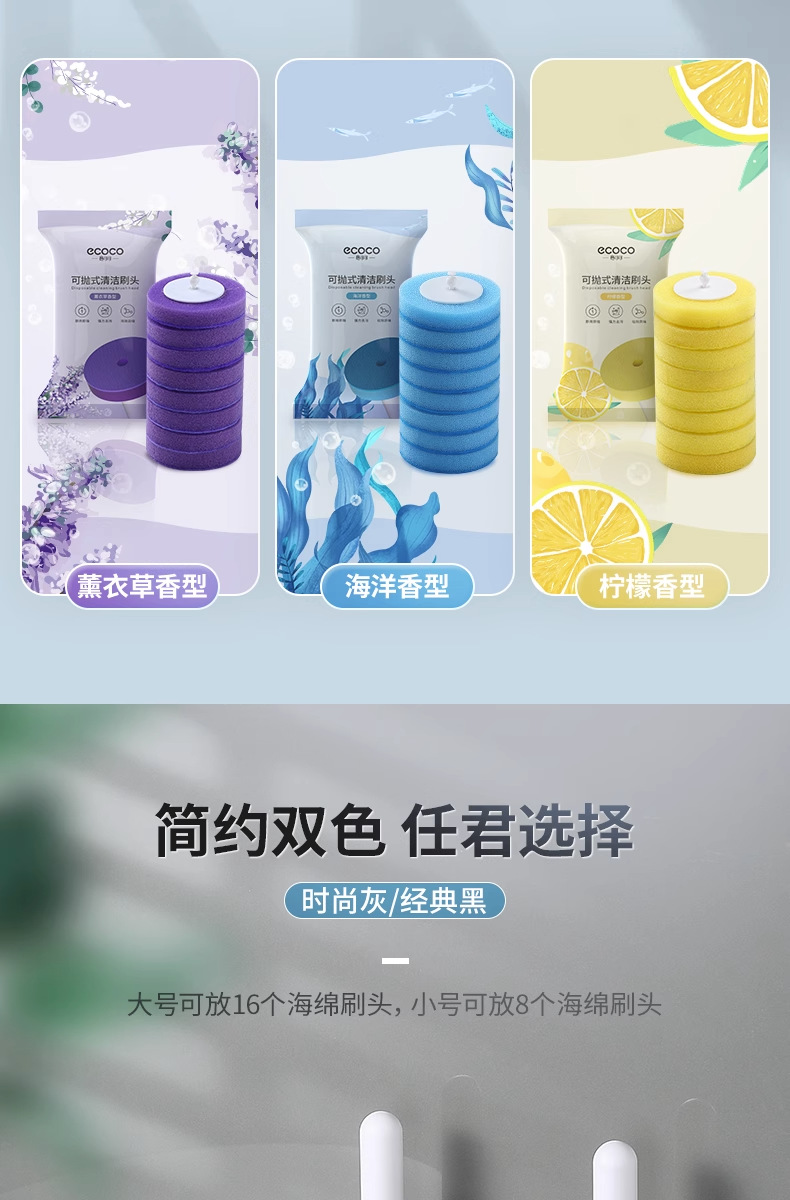 • 클래식 블랙 업그레이드 [벽 변기 브러시 + 바다 풍미 브러시 16 장 헤드]