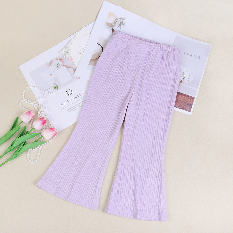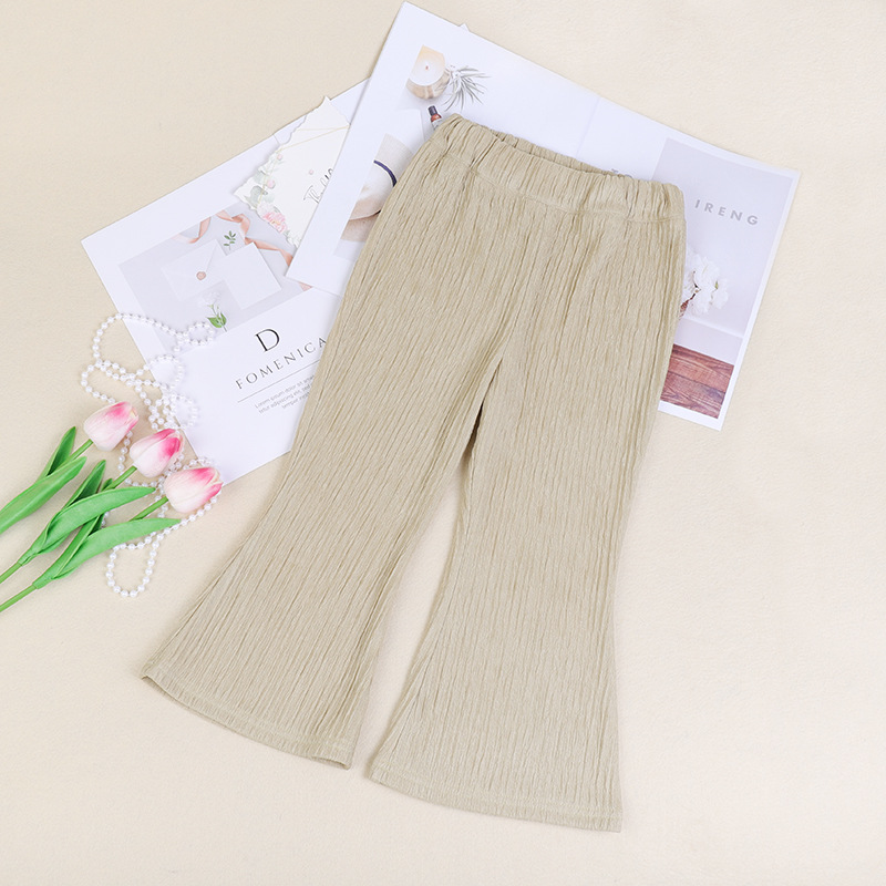 봄과 여름 여아 플레어 팬츠 아동 캐주얼 바지 얇은 유행 단색 바지 모든 매치 루즈한 아동복스토어 가기