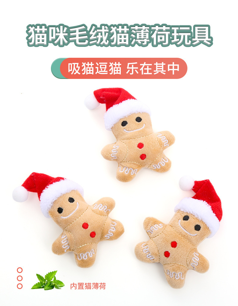 크리스마스 모자 진저 브레드 남자 봉제 인형 개박하 애완 동물 용품 고양이 장난감 국경 도매 공장 재고스토어 가기