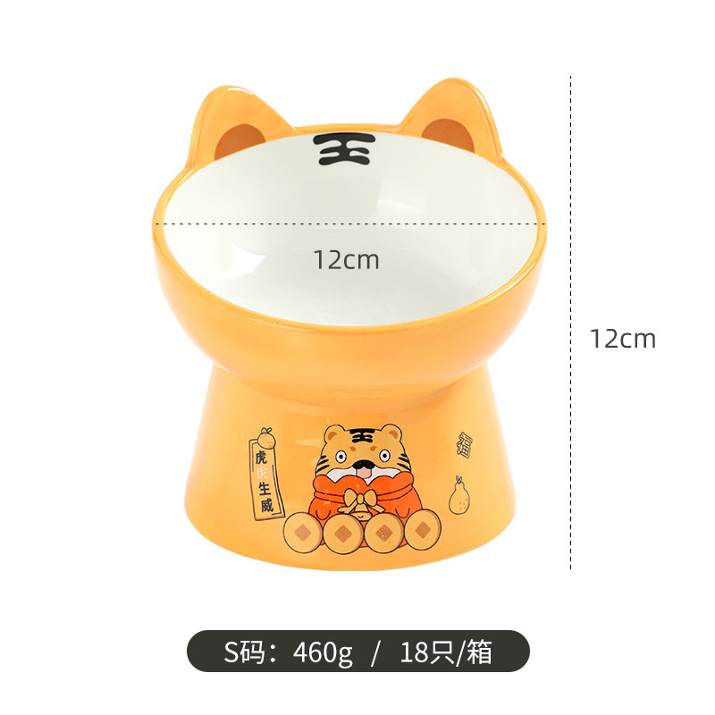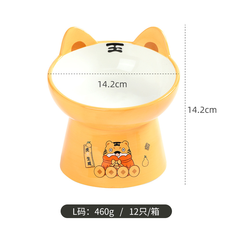 Tianyuan 애완 동물 만화 세라믹 그릇 평평한 입 애완 동물 먹이 그릇 고양이 그릇 목 보호 비스듬한 개 그릇 음식 용품스토어 가기