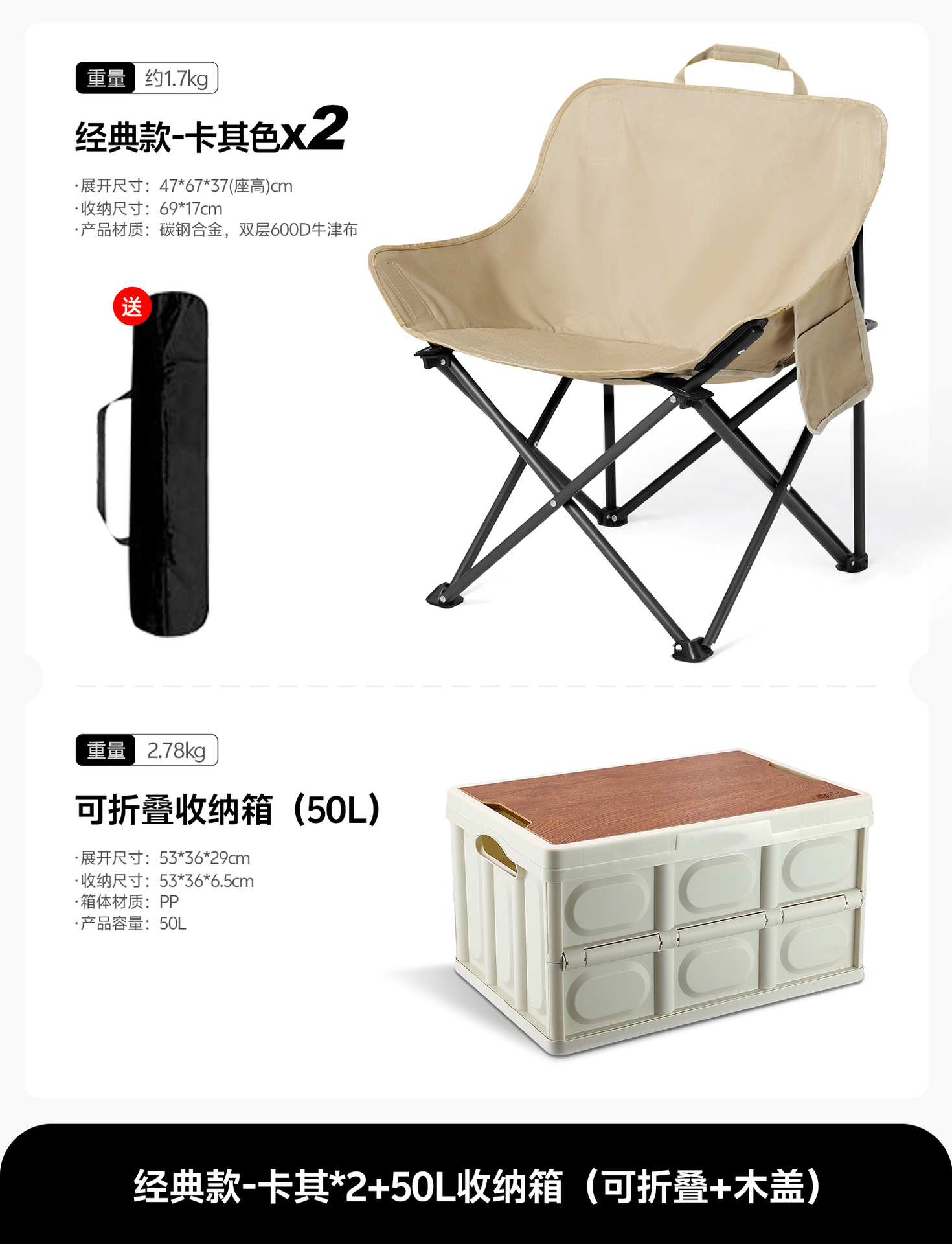 • [카키문체어]×2+수납박스 55L×1