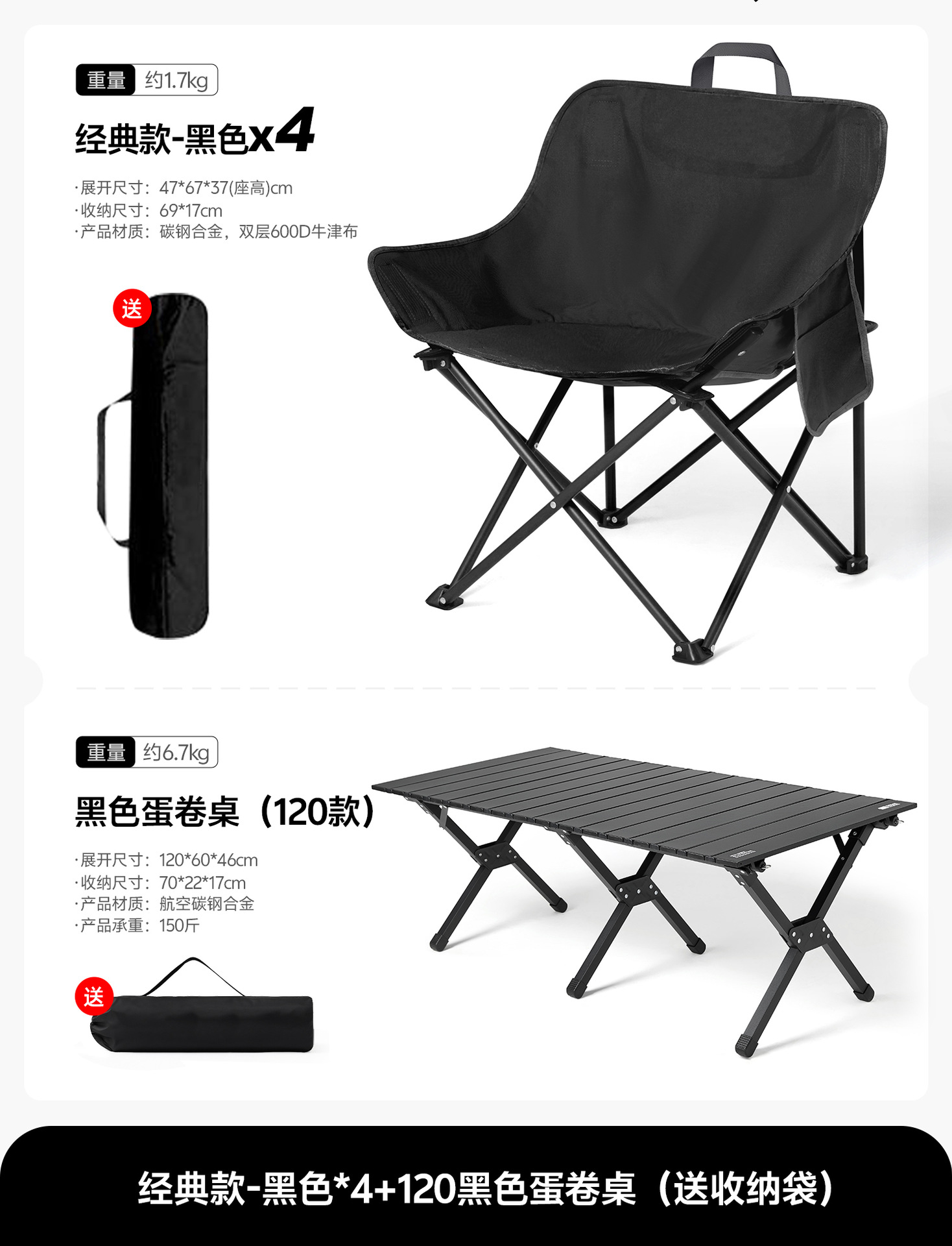 • [블랙문체어]×4+[120cm 대형 블랙에그롤 테이블]