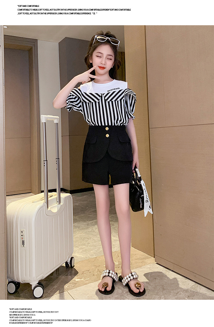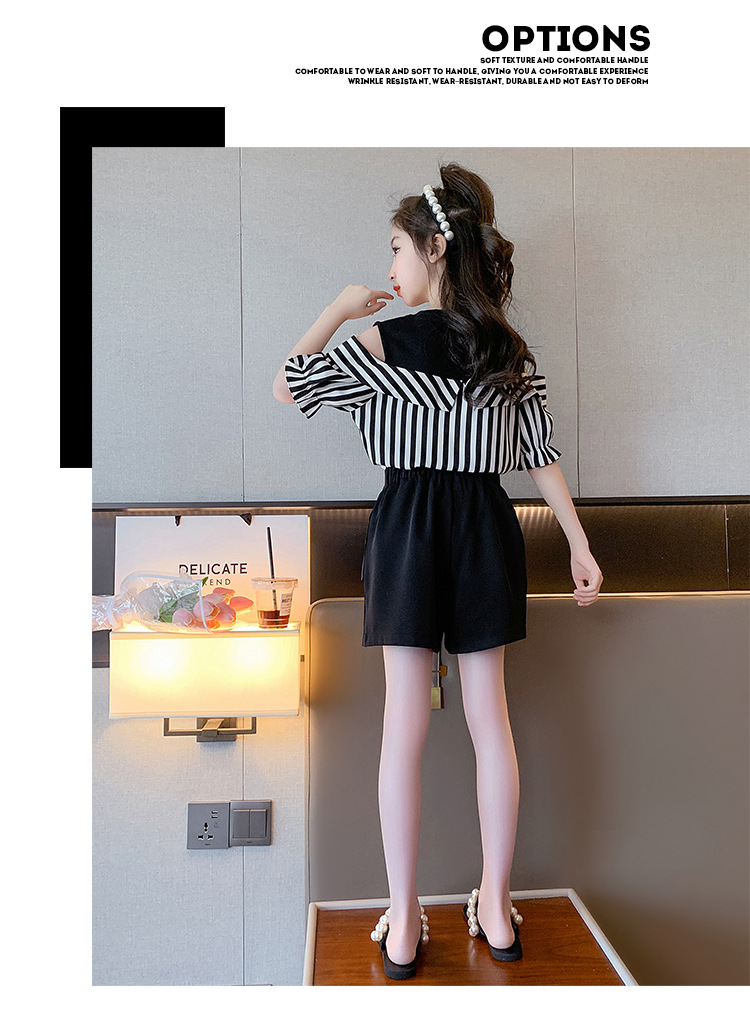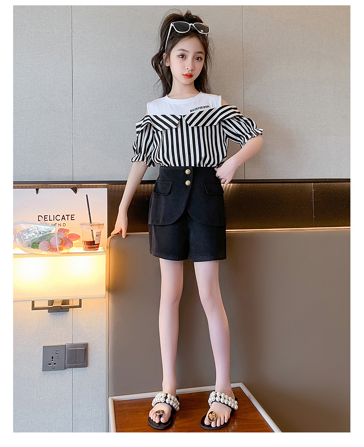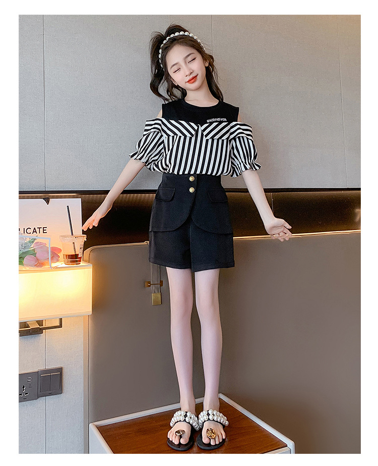 여아 여름 세트 2023 새로운 인터넷 연예인 아동 서양식 오프숄더 반팔 아동 여름 스커트 투피스 세트