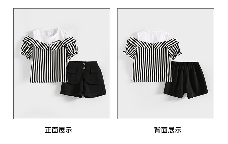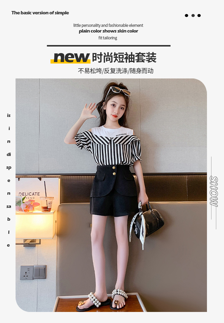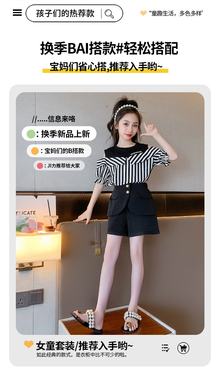 여아 여름 세트 2023 새로운 인터넷 연예인 아동 서양식 오프숄더 반팔 아동 여름 스커트 투피스 세트스토어 가기