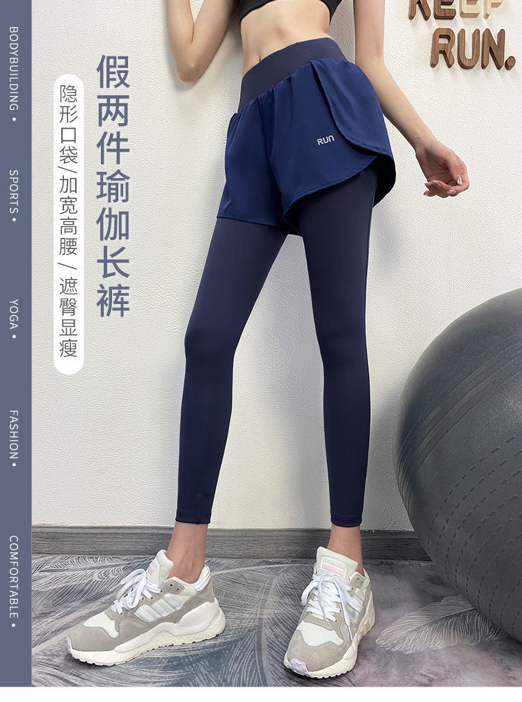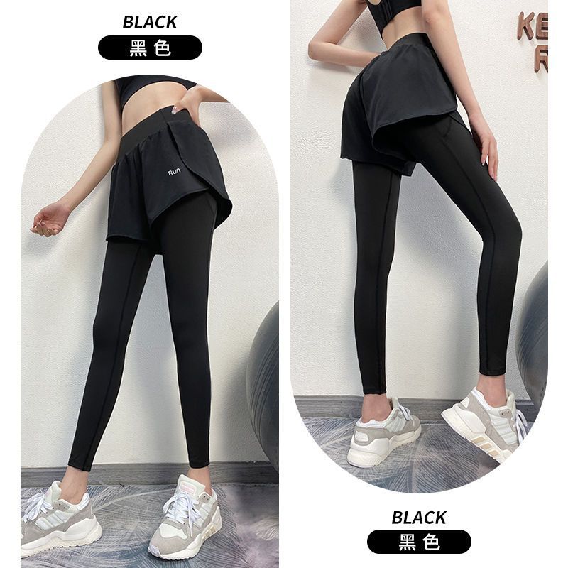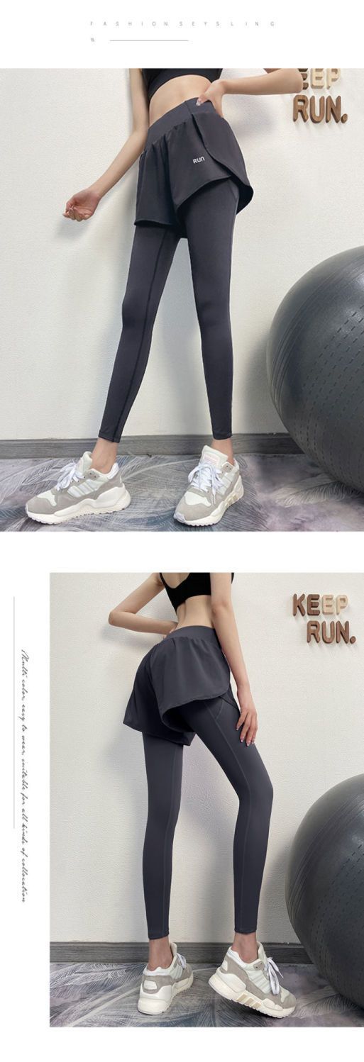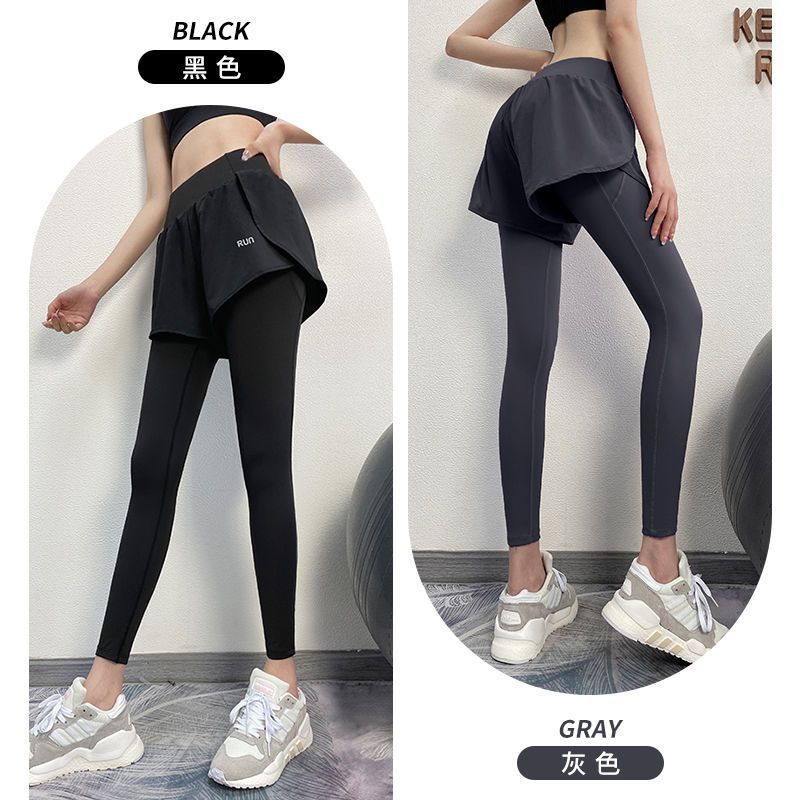 가짜 투피스 피트니스 바지 여성용 탄성 타이트 러닝 스커트 겉옷 봄과 여름 속건 하이 웨이스트 힙 리프팅 요가 바지스토어 가기