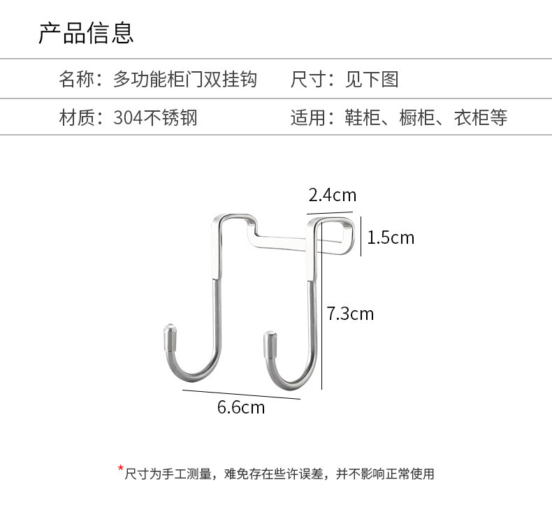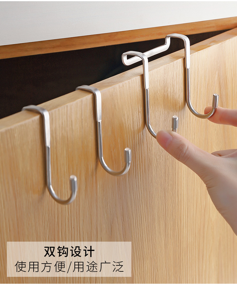 스테인레스 스틸 더블 S 자형 캐비닛 도어 후크 천공되지 않은 도어 후면 걸이 옷 후크 주방 욕실 다기능 캐비닛 도어 백 S-후크