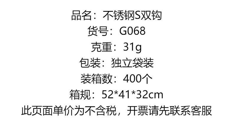 • 스테인레스 스틸 S 더블 후크(쇼트 스타일) 1개