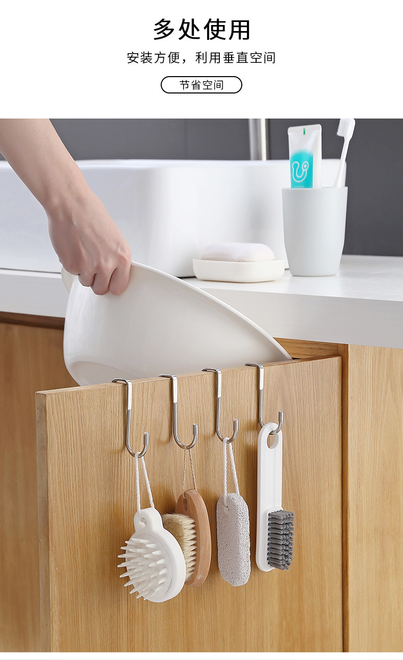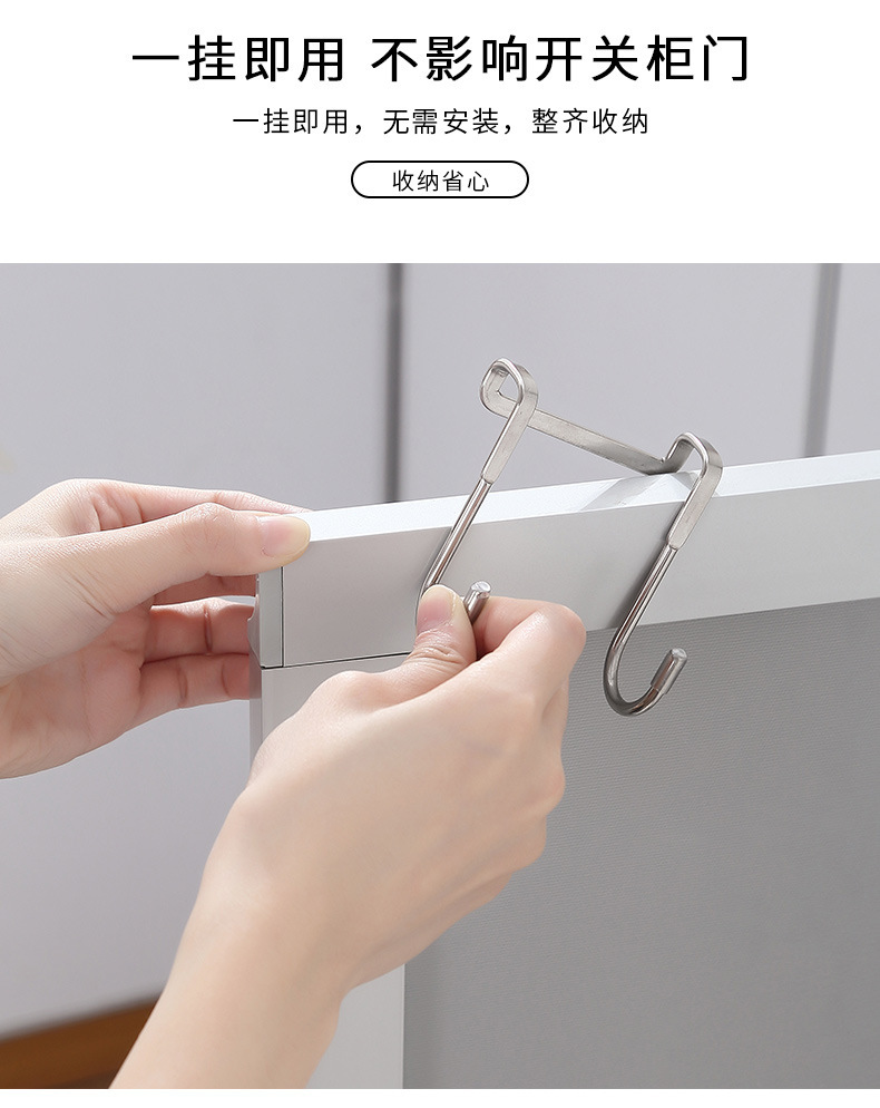 스테인레스 스틸 더블 S 자형 캐비닛 도어 후크 천공되지 않은 도어 후면 걸이 옷 후크 주방 욕실 다기능 캐비닛 도어 백 S-후크스토어 가기