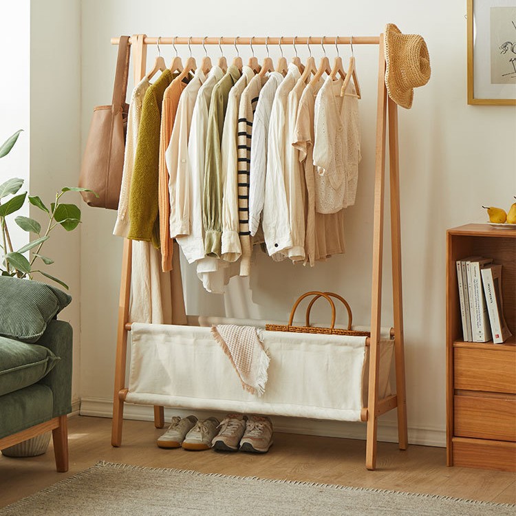 단단한 나무 코트 랙 침실 바닥 옷걸이 빛 럭셔리 새로운 중국 스타일 간단한 보관 옷걸이 가정용 의류 랙