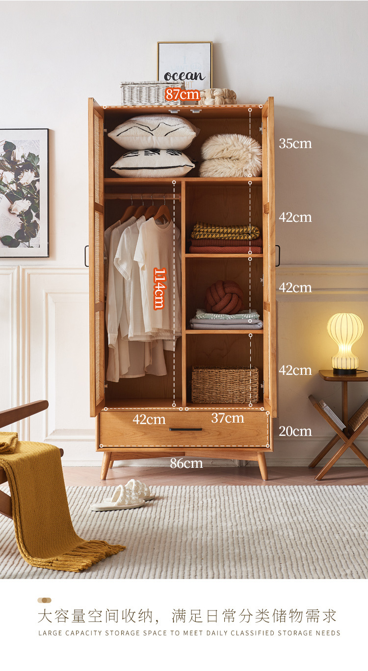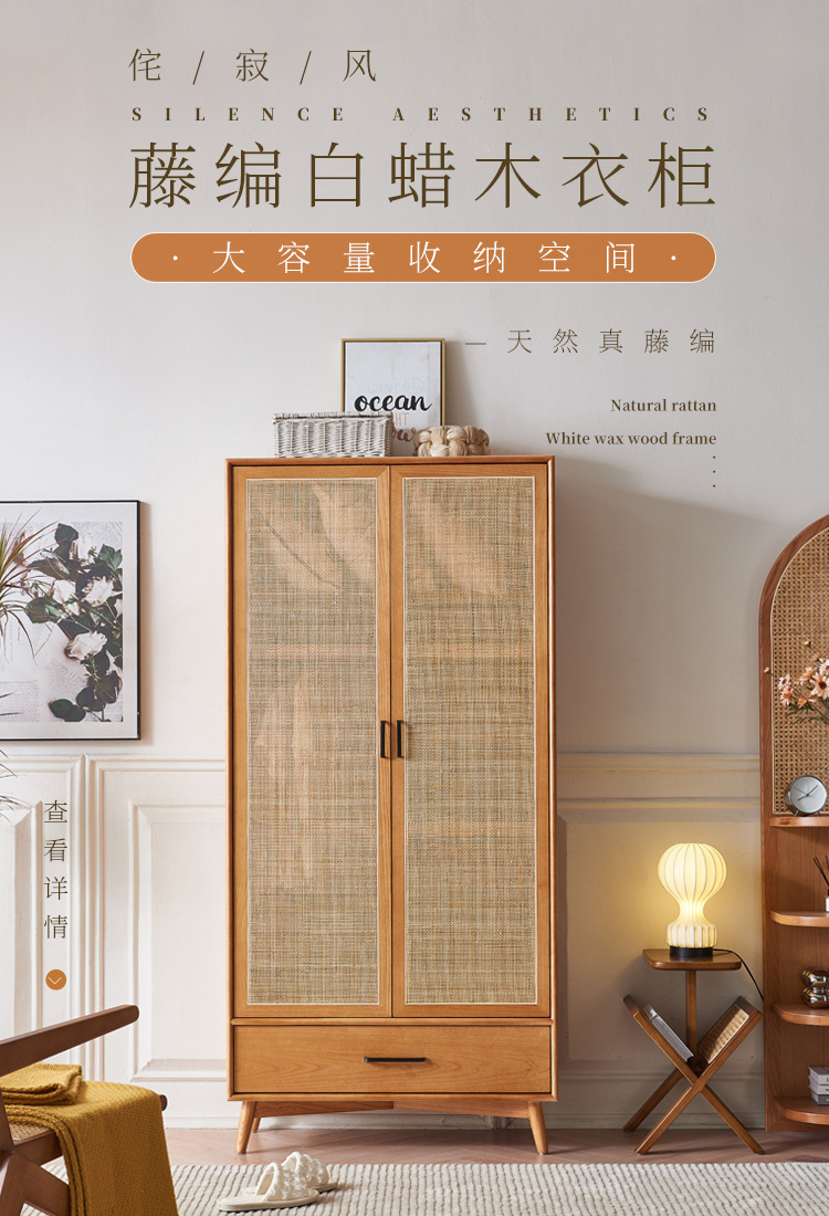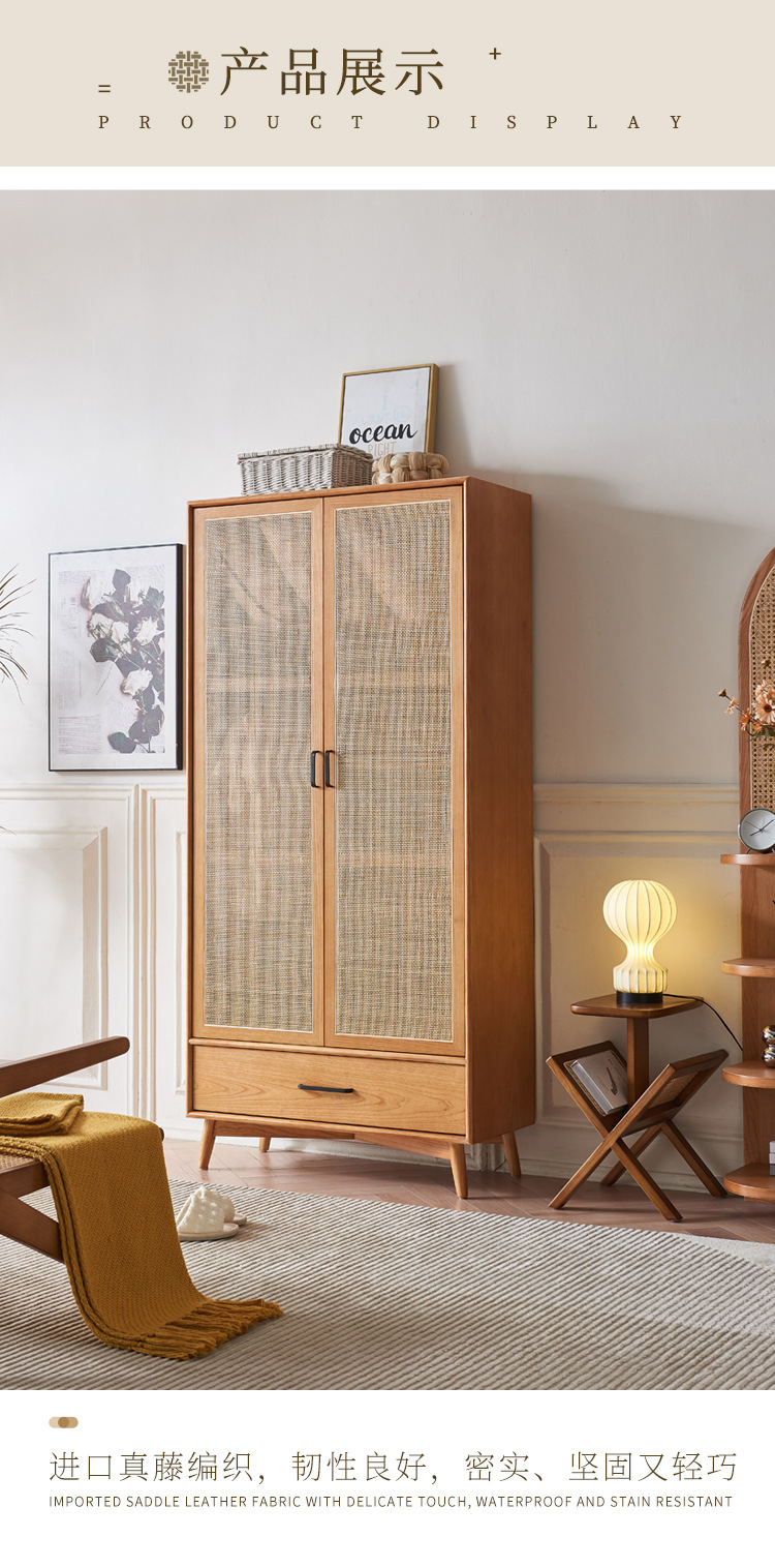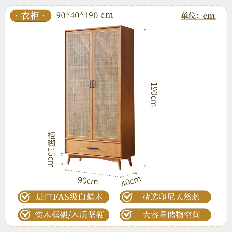 23 새로운 도착 사일런트 스타일 침실 홈 레트로 더블 도어 배수 파티션 스토리지 캐비닛을위한 등나무 단단한 옷장스토어 가기