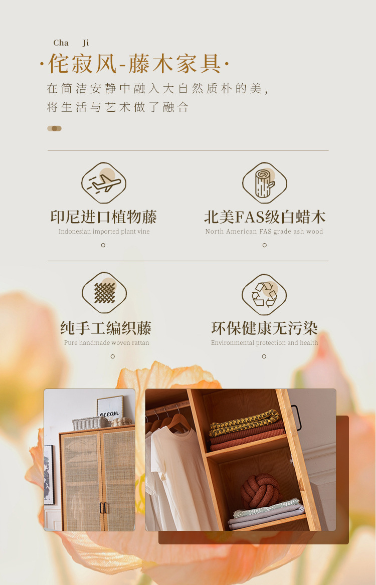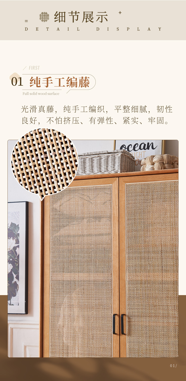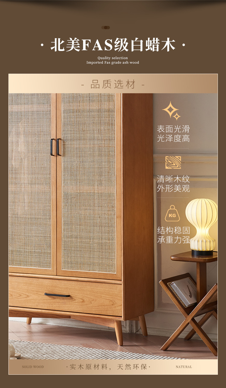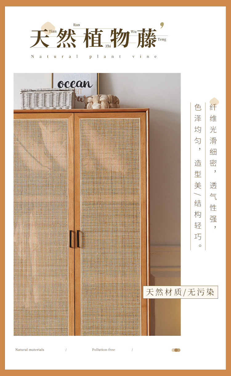 23 새로운 도착 사일런트 스타일 침실 홈 레트로 더블 도어 배수 파티션 스토리지 캐비닛을위한 등나무 단단한 옷장스토어 가기