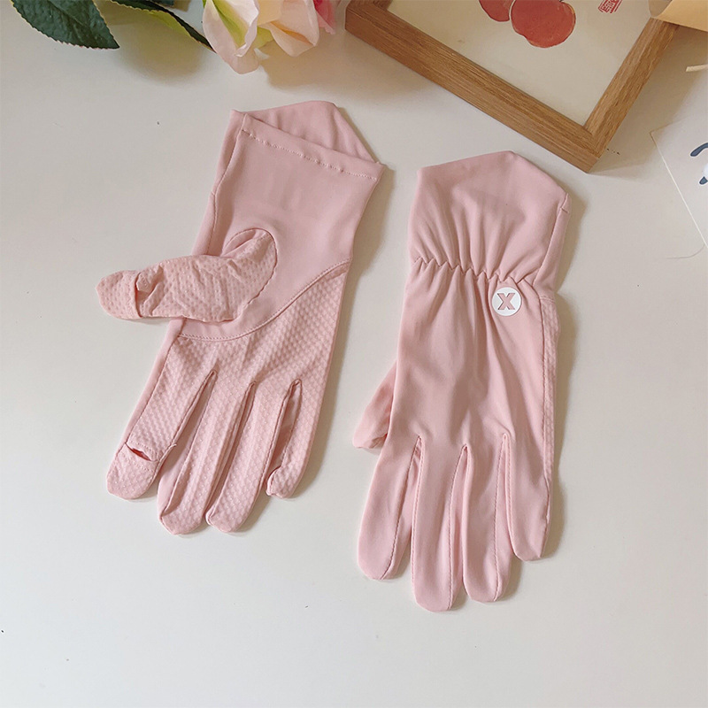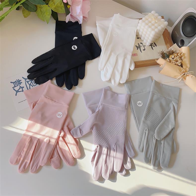 여성용 아이스 실크 자외선 차단 장갑, 자외선 차단, 미끄럼 방지, 운전, 라이딩, 전기 자전거 타기, 터치스크린 사용 가능, 여성용 얇은 여름용 장갑