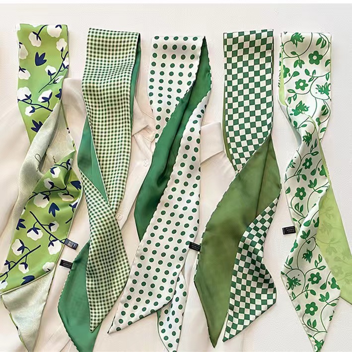 작은 신선한 녹색 헤어 밴드 스카프 작은 긴 여자의 얇은 새틴 스카프 리본 넥타이 가방 장식 스카프 모든 일치스토어 가기