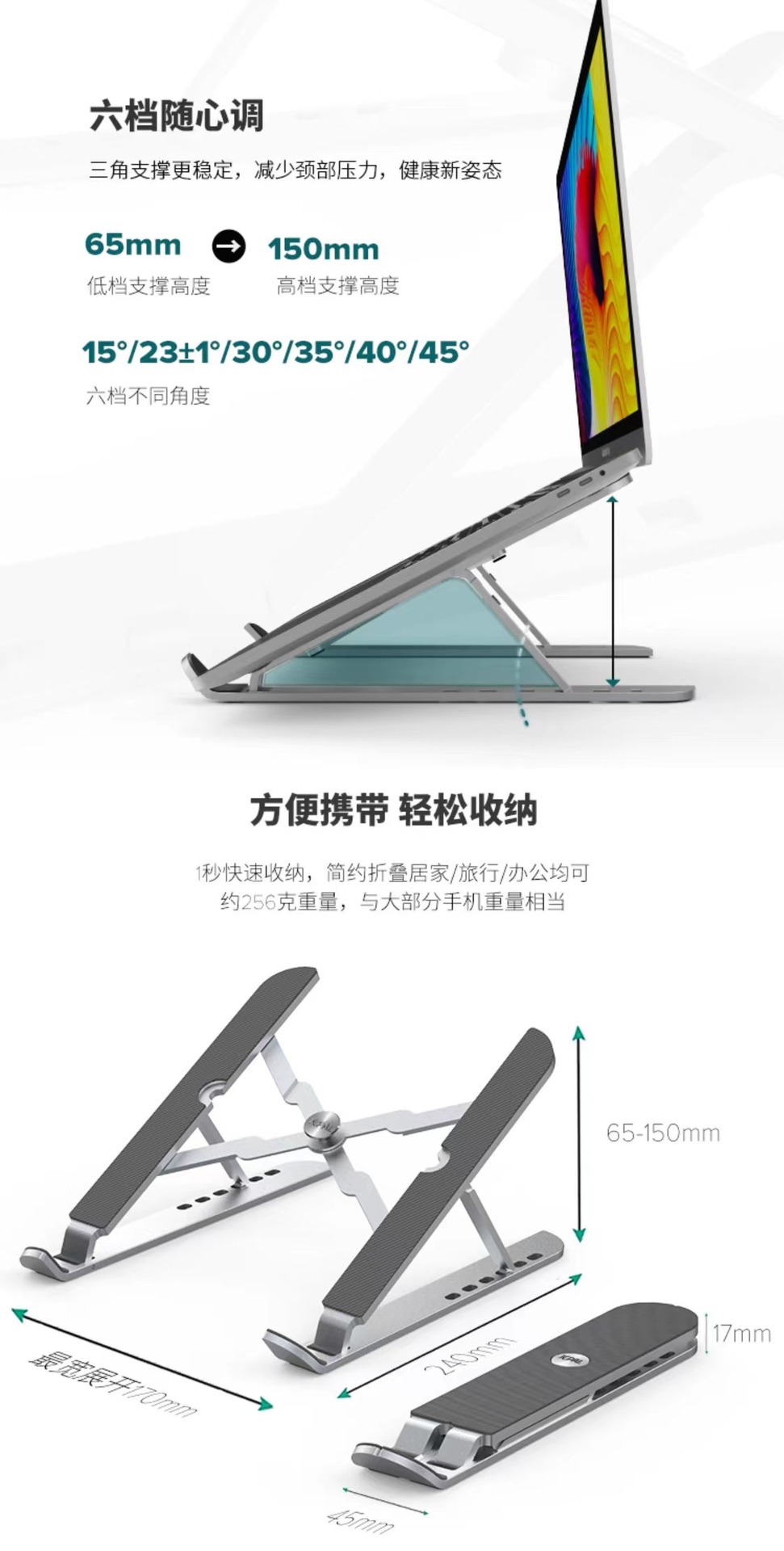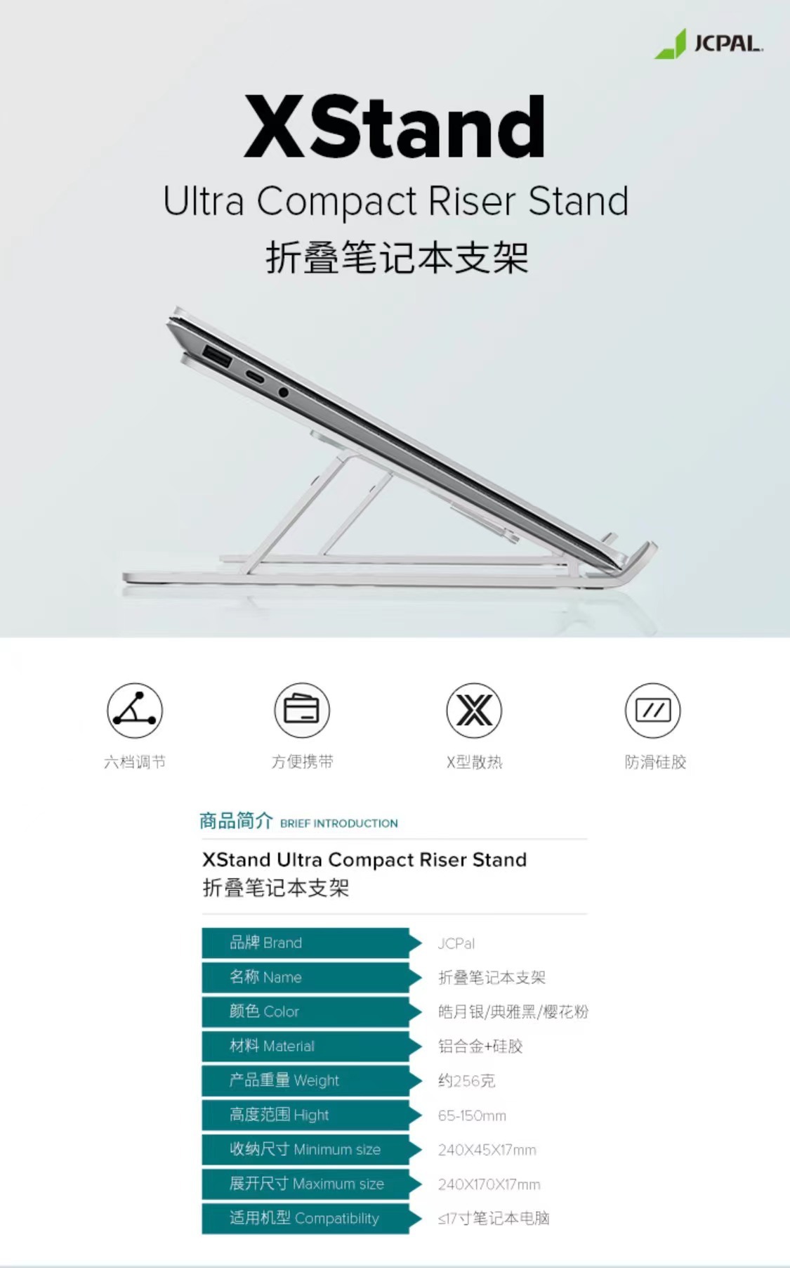 JCPAL 노트북 스탠드 냉각 서스펜션 리프팅 오피스 데스크탑 스탠드 다기능 기본 접이식
