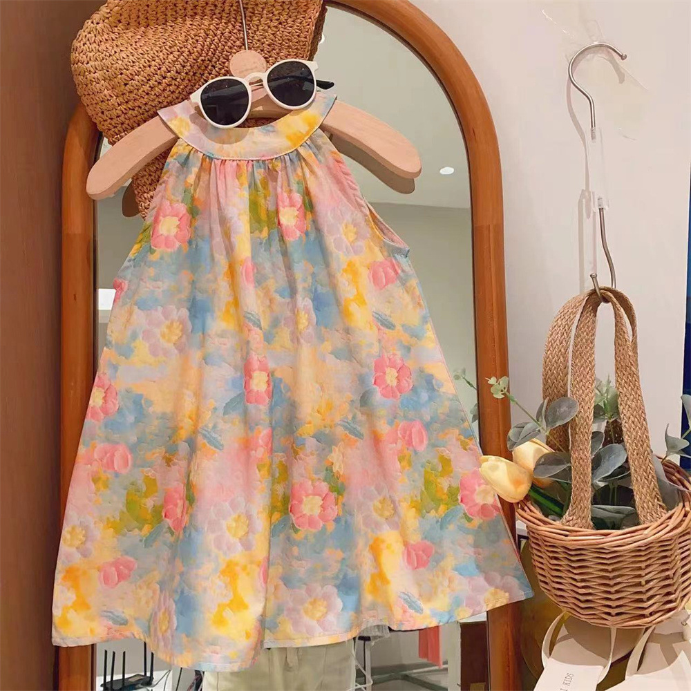아동 의류 여름 어린 소녀 스커트 2025 여름 새로운 한국 스타일 소녀 유화 스타일 드레스 어린이 민소매 스커트스토어 가기