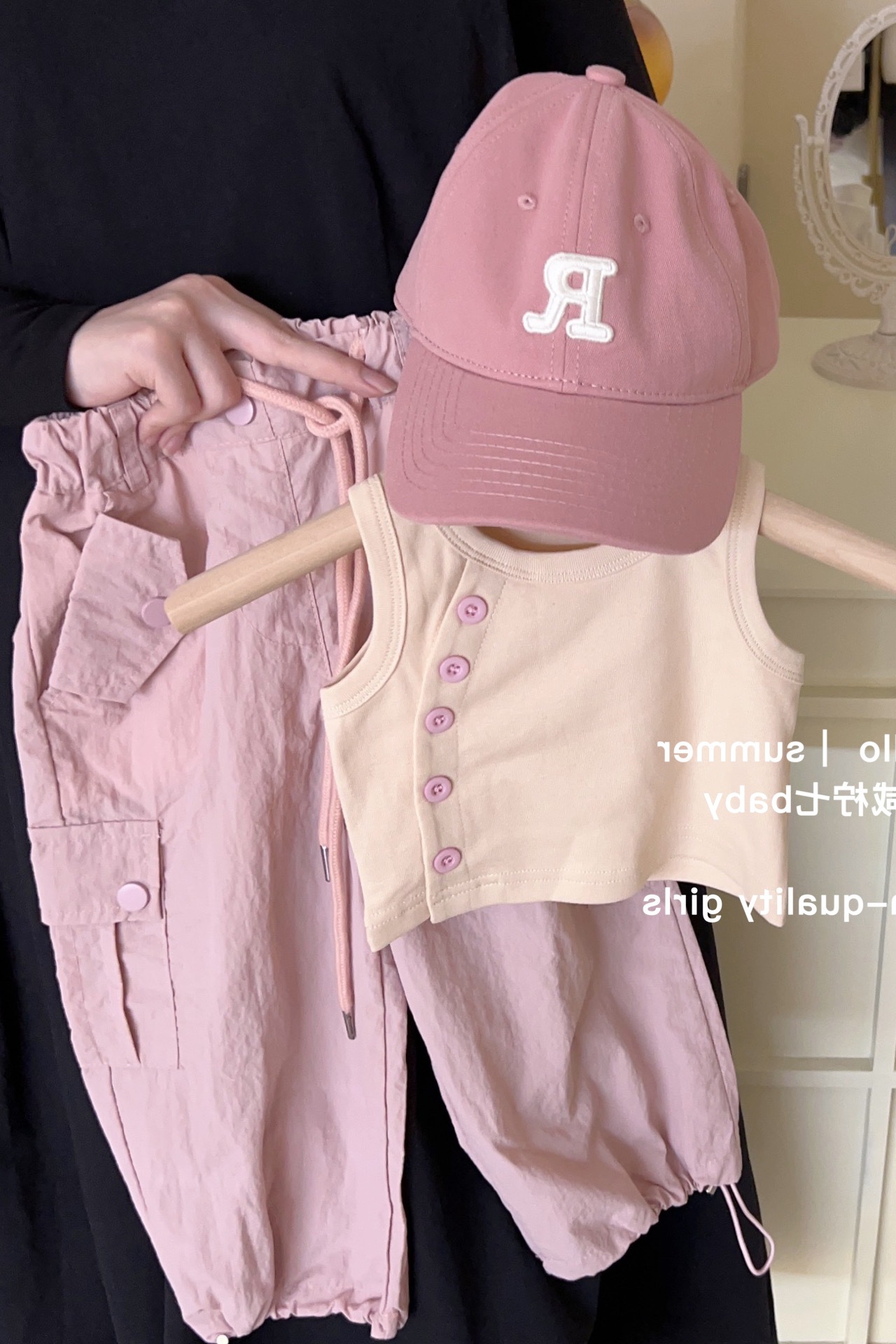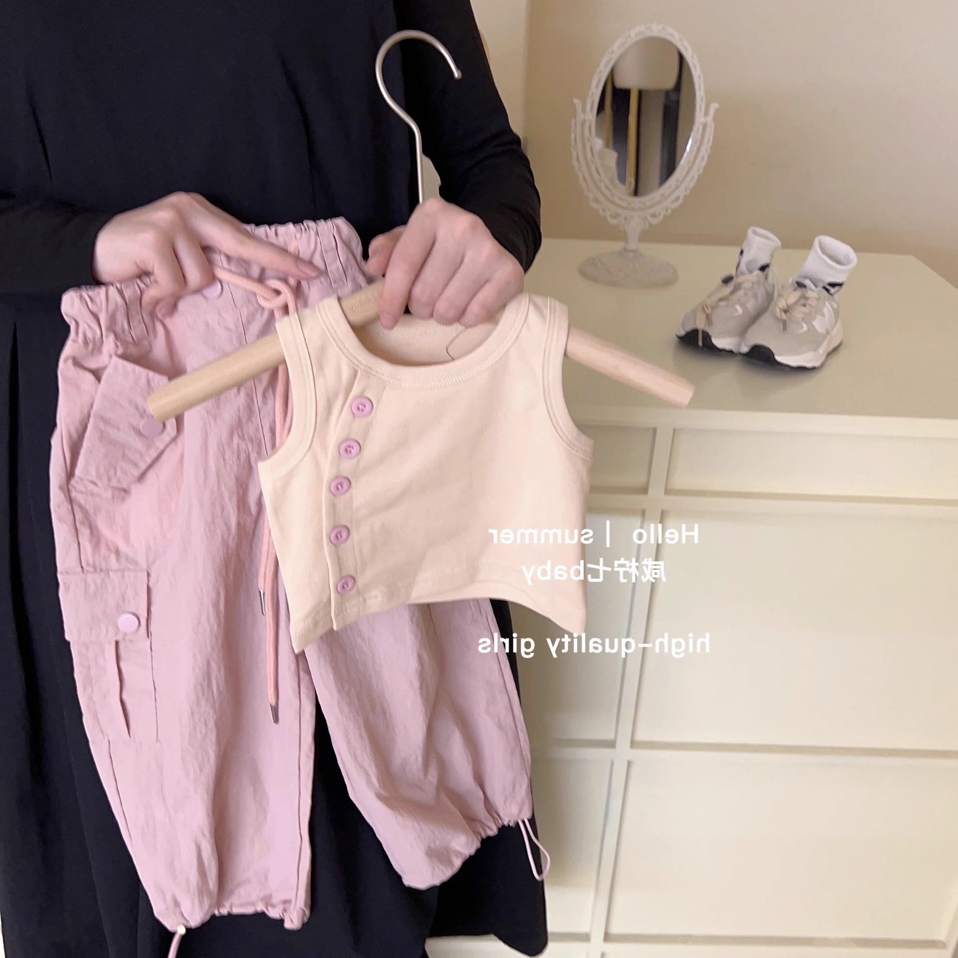 여아용 세트, 사선 단추 탄성 조끼와 작업 바지, 25 여름 신상품, 수출 아동복, 3-8세용스토어 가기