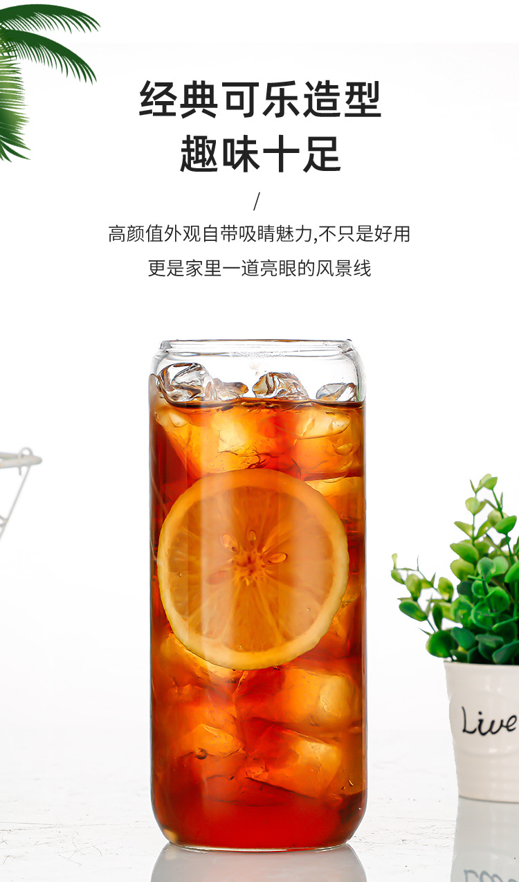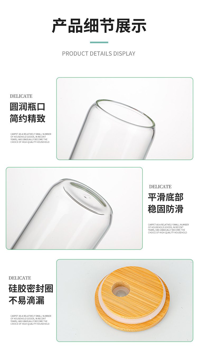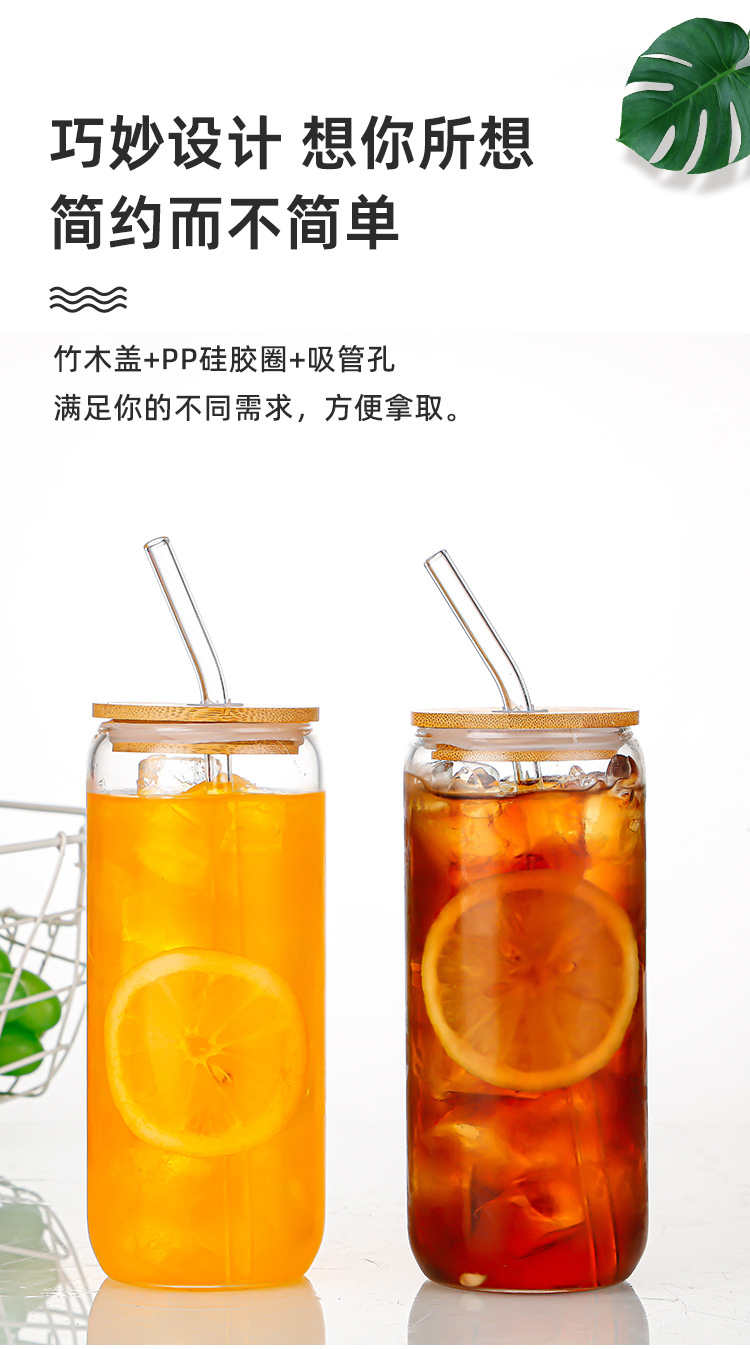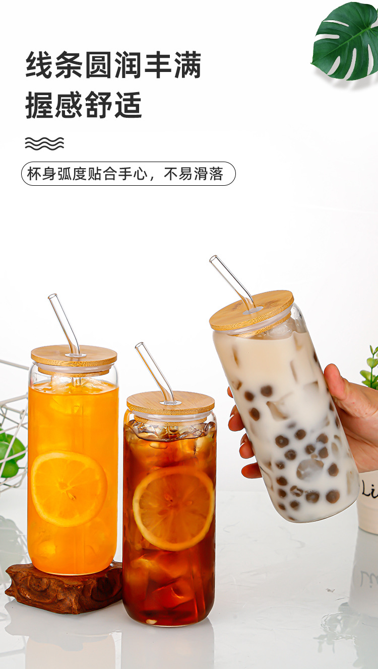 아마존 높은 붕규산 밀짚 컵 투명 유리 고온 방지 콜라 컵 대나무 뚜껑 주스 차가운 음료 여름 물 컵스토어 가기